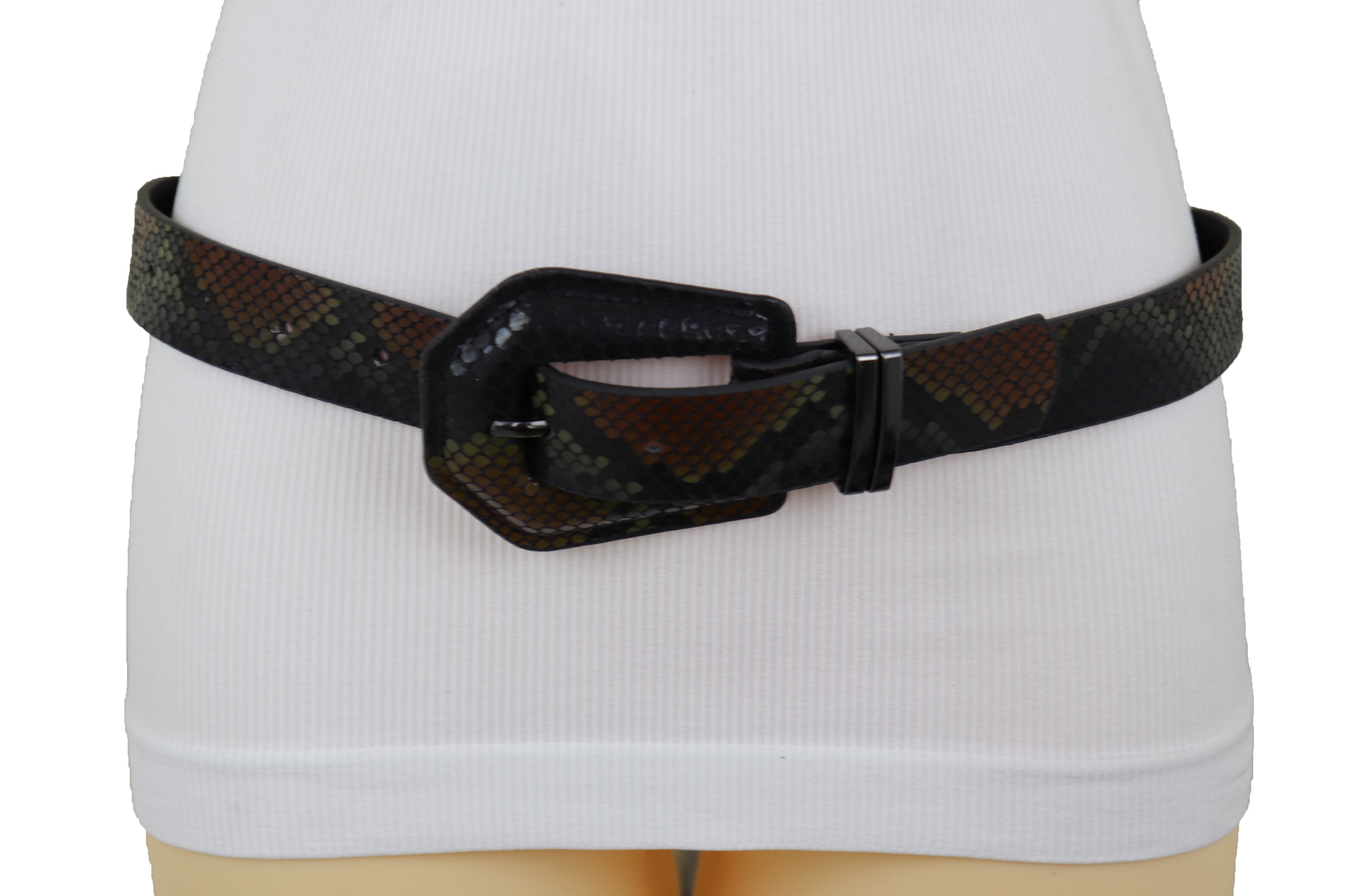Black Brown Faux Leather Pant Jeans Skinny Belt Snakeskin Print Size S M