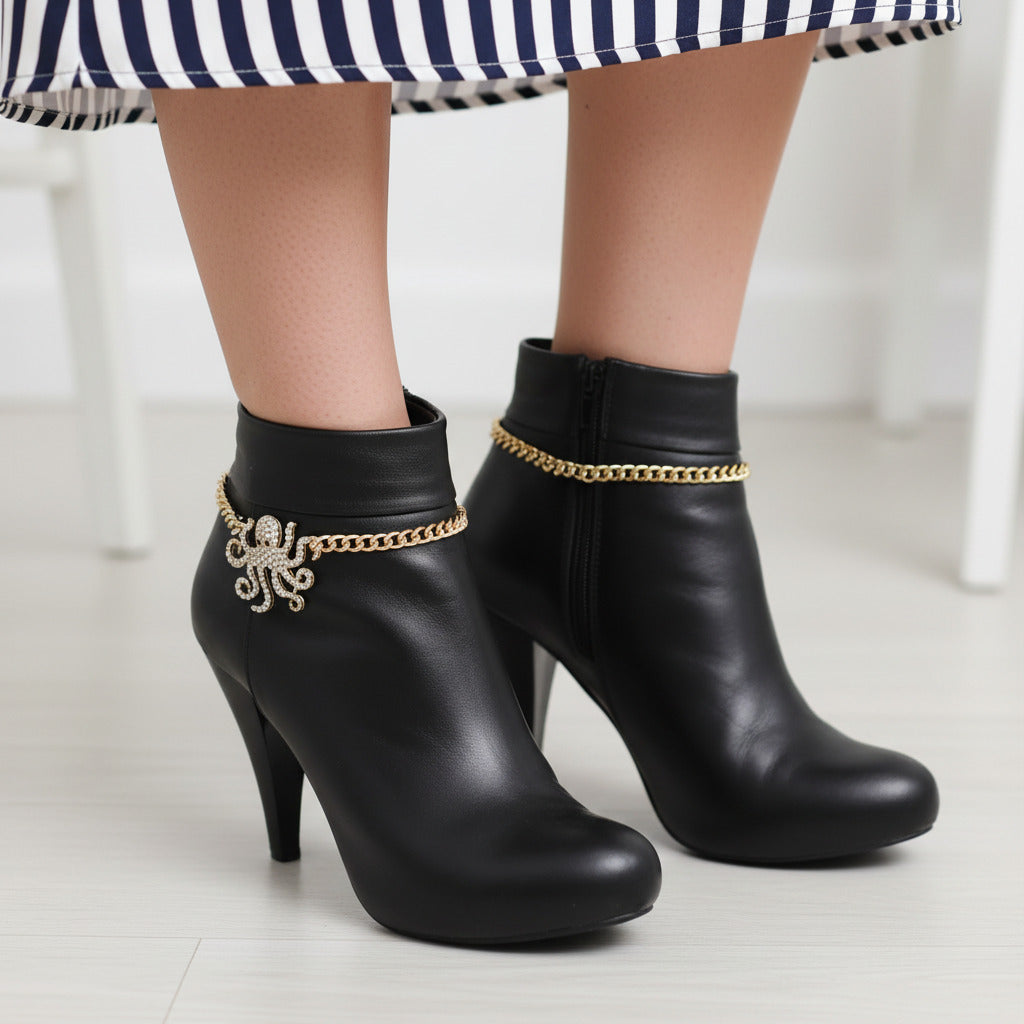 Brand New Women 2PCS Gold Metal Boot Chain Bracelet Octopus Charm Shoe Anklet BC74