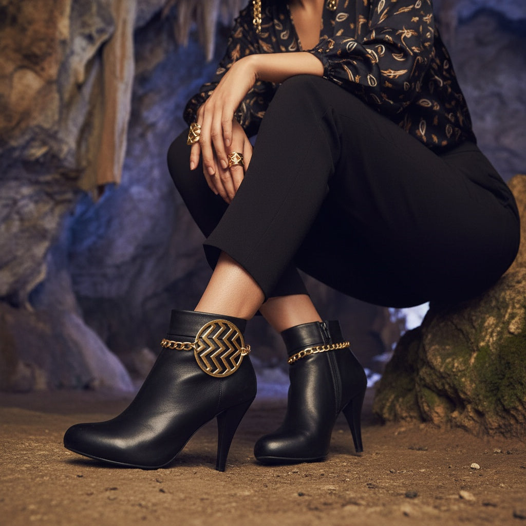 Women’s 2-Pc Gold Boot Chain Anklet Set – Round Chevron Concho Charm, Adjustable 11–15 in, Pair of Boot Bracelets for Ankle Boots/Cowboy Boots – Handmade in USA |