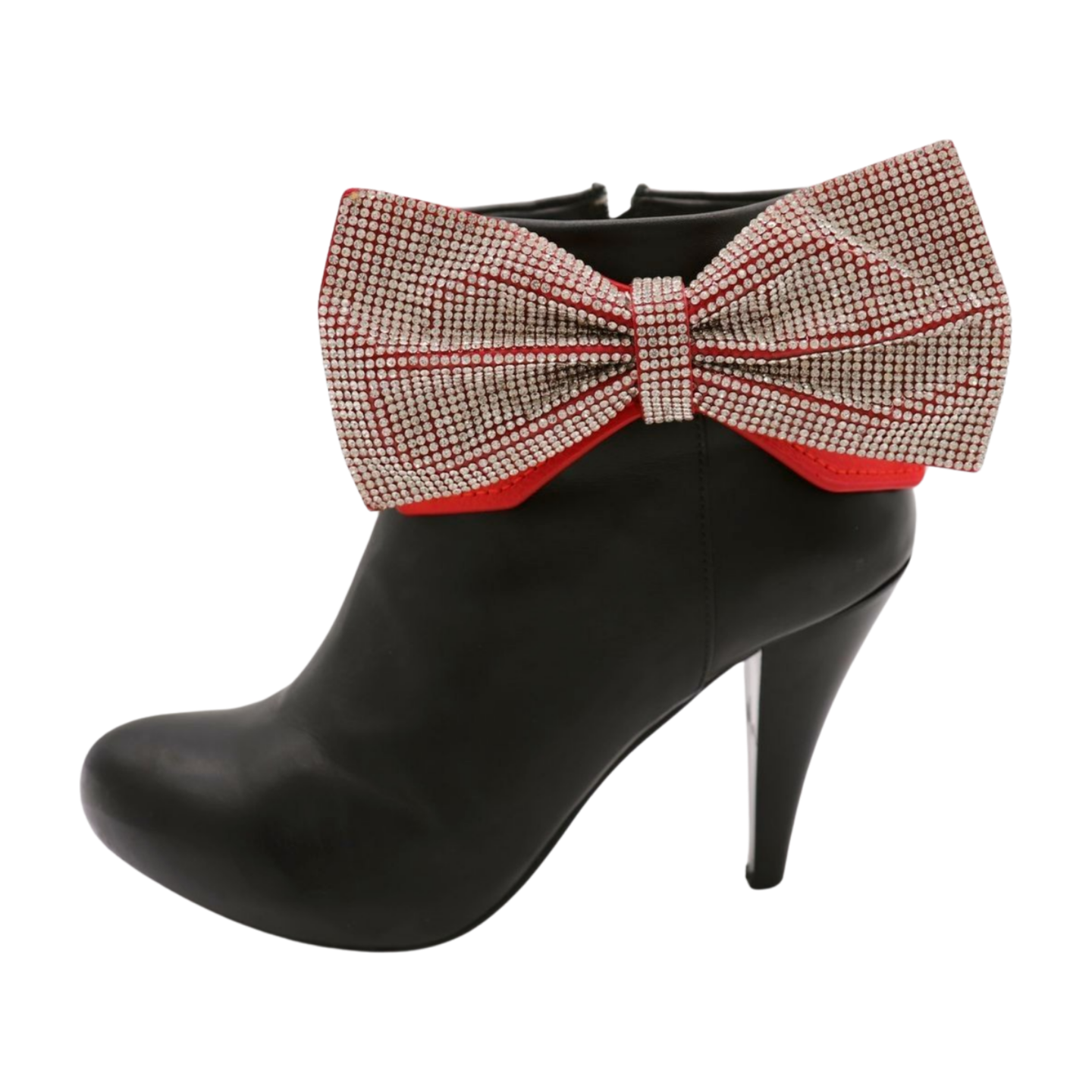Brand New Women 2PCS Gold Metal Boot Chain Bracelet Shoe Anklet Big Bling Red Bow Tie Charm Set Fashion Jewelry - A PAIR BC43