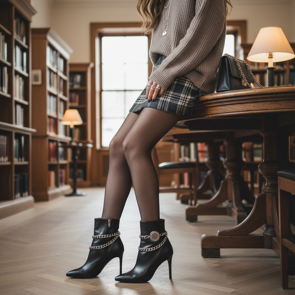 Women’s Boot Chain Bracelet Set (2PCS) – Silver-Tone Wave Charm Anklets With Rhinestone Bling, Adjustable 11–15 in, Handmade USA, Western Punk Rocker Shoe Jewelry |
