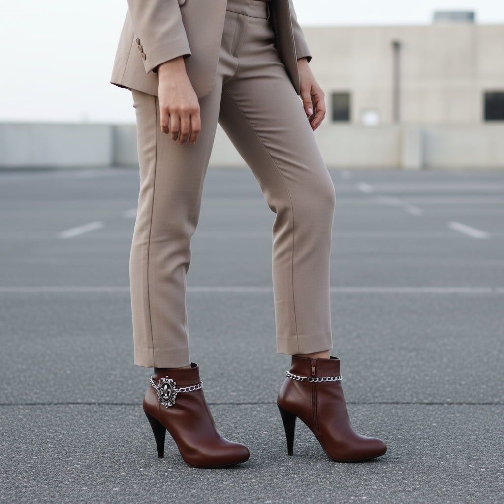 2-Pack Women’s Boot Chain Anklets – Silver Fleur-De-Lis Boot Bracelets (Pair), Adjustable 11"–15", Rhinestone & Black Enamel Charm (2.5" x 2"), Western/Cowgirl Shoe Jewelry, Handmade in USA