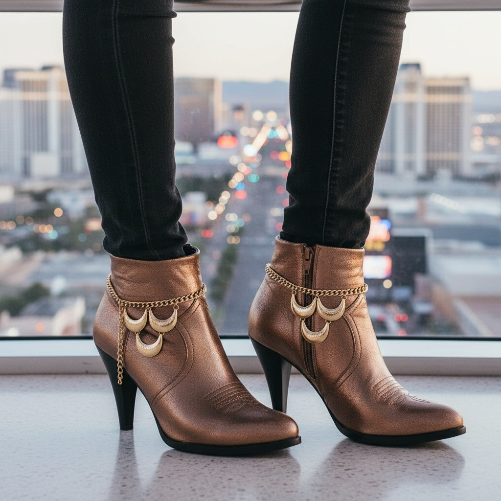 Brand New Women Gold Metal Boot Chain Bracelet Shoe Anklet Moon Charm SET BC189