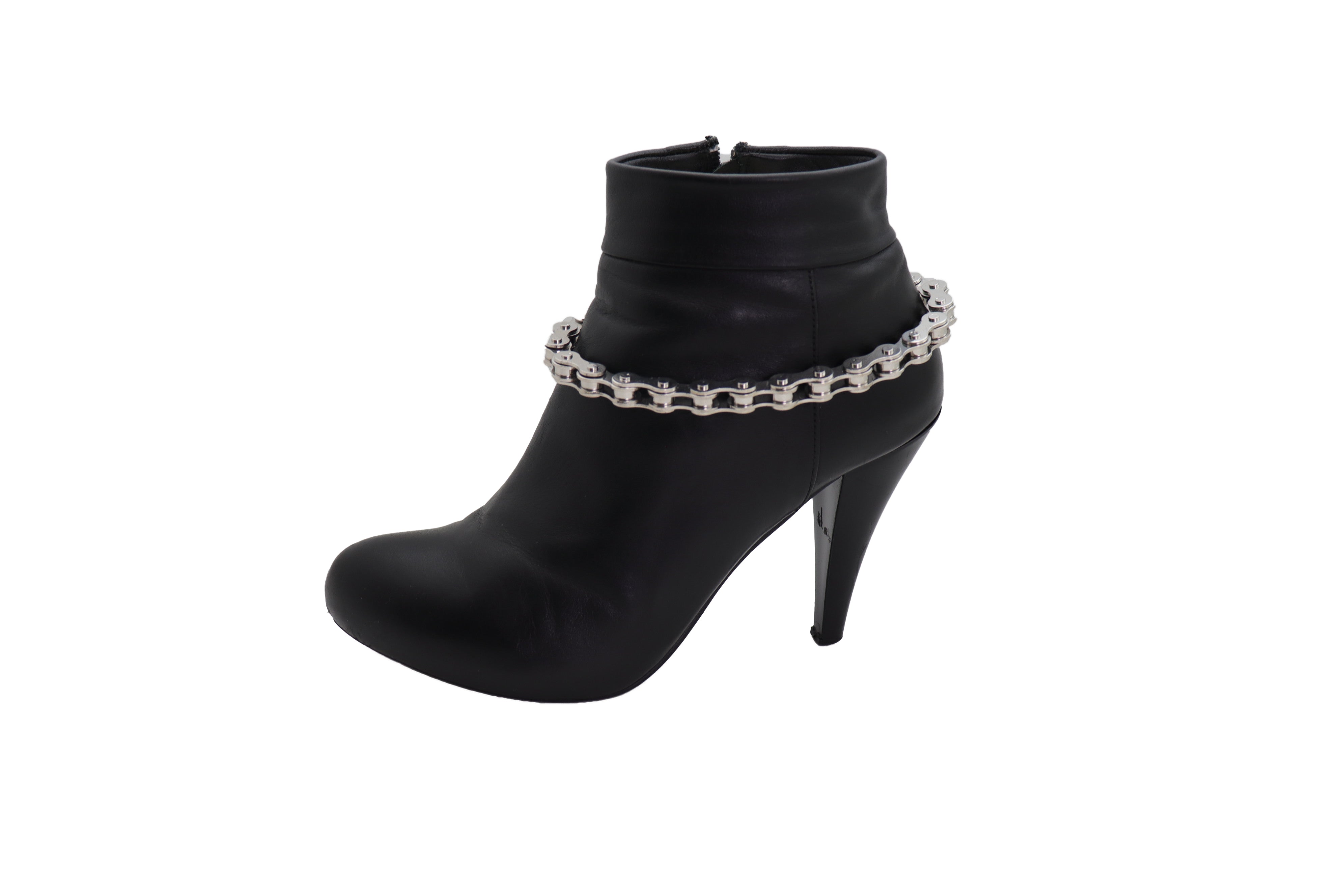 Silver Metal Chain Thick Motorcycle Links Western Boot Bracelet Charm Shoe