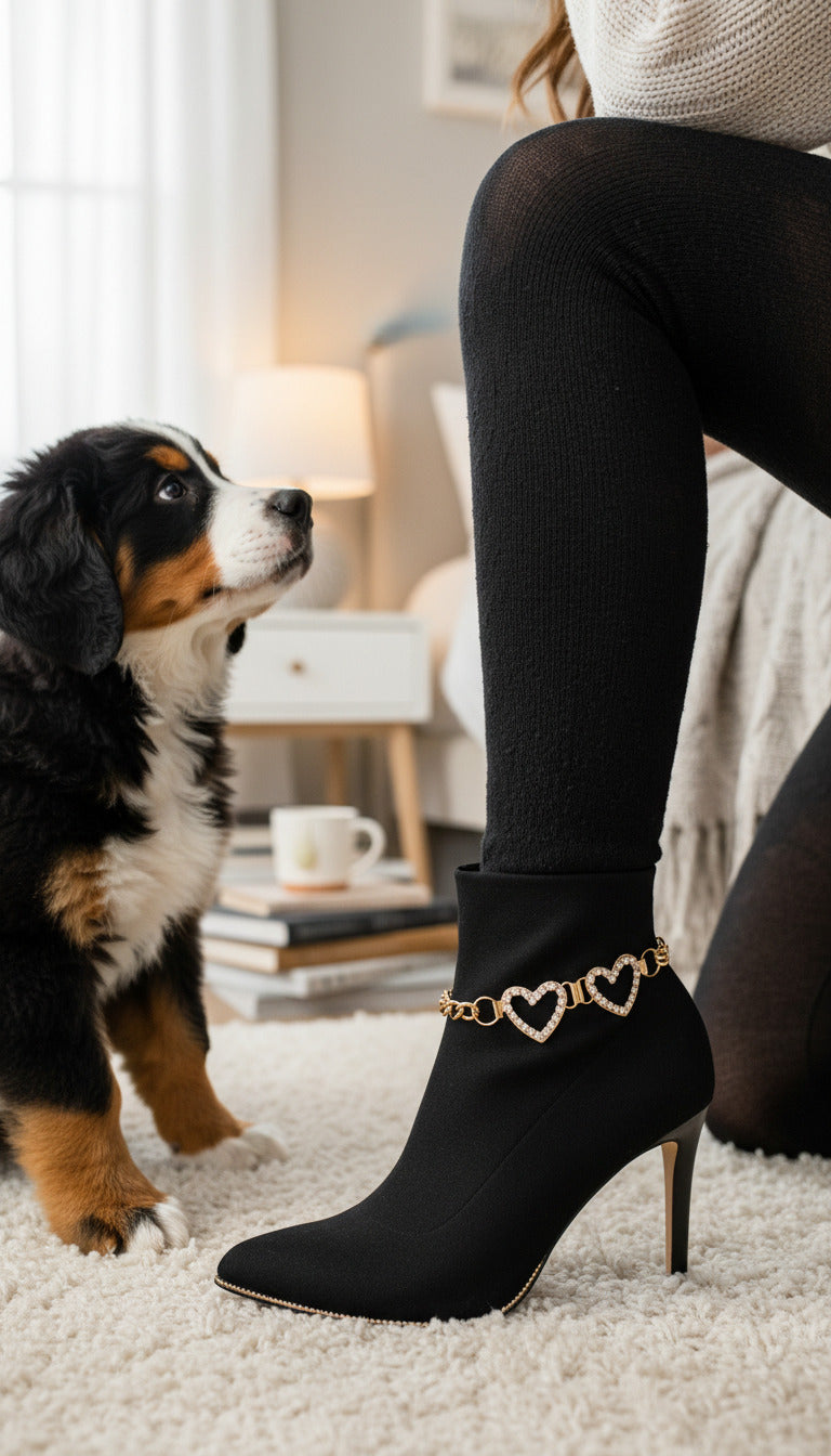 The design is simple: a slim gold-tone chain anchored by two rhinestone heart charms. Clip them around your boot ankle, adjust the length and suddenly your go-to black boots feel new again. They look polished with office outfits and then catch the light just right under restaurant or bar lighting.