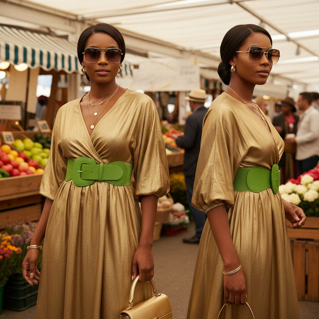 Brand New Women Olive Green Elastic Waistband Wide Fashion Belt Big Buckle Size S M - WB27