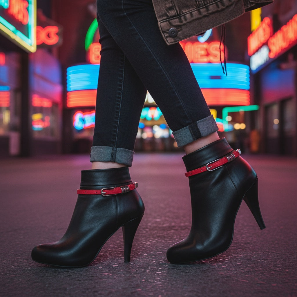 Brand New Women Red Strap 2PCS Boot Chain Bracelet Shoe Anklet Belt Buckle Charm Fashion Jewelry Set - A PAIR BC8