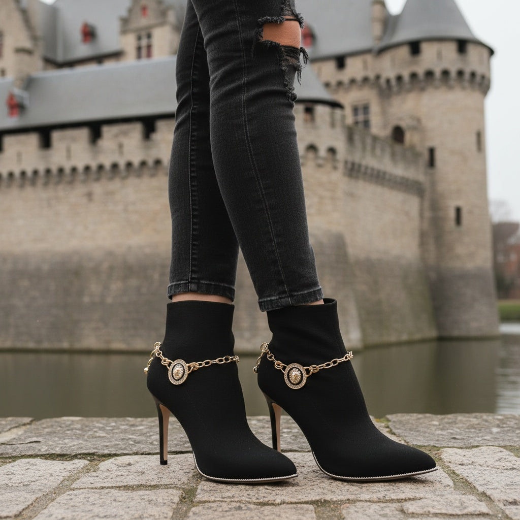 Brand New Women Gold Metal Boot Chain Bracelet Shoe Anklet Bling Lion Head Medallion Double Sided Charm SET BC176