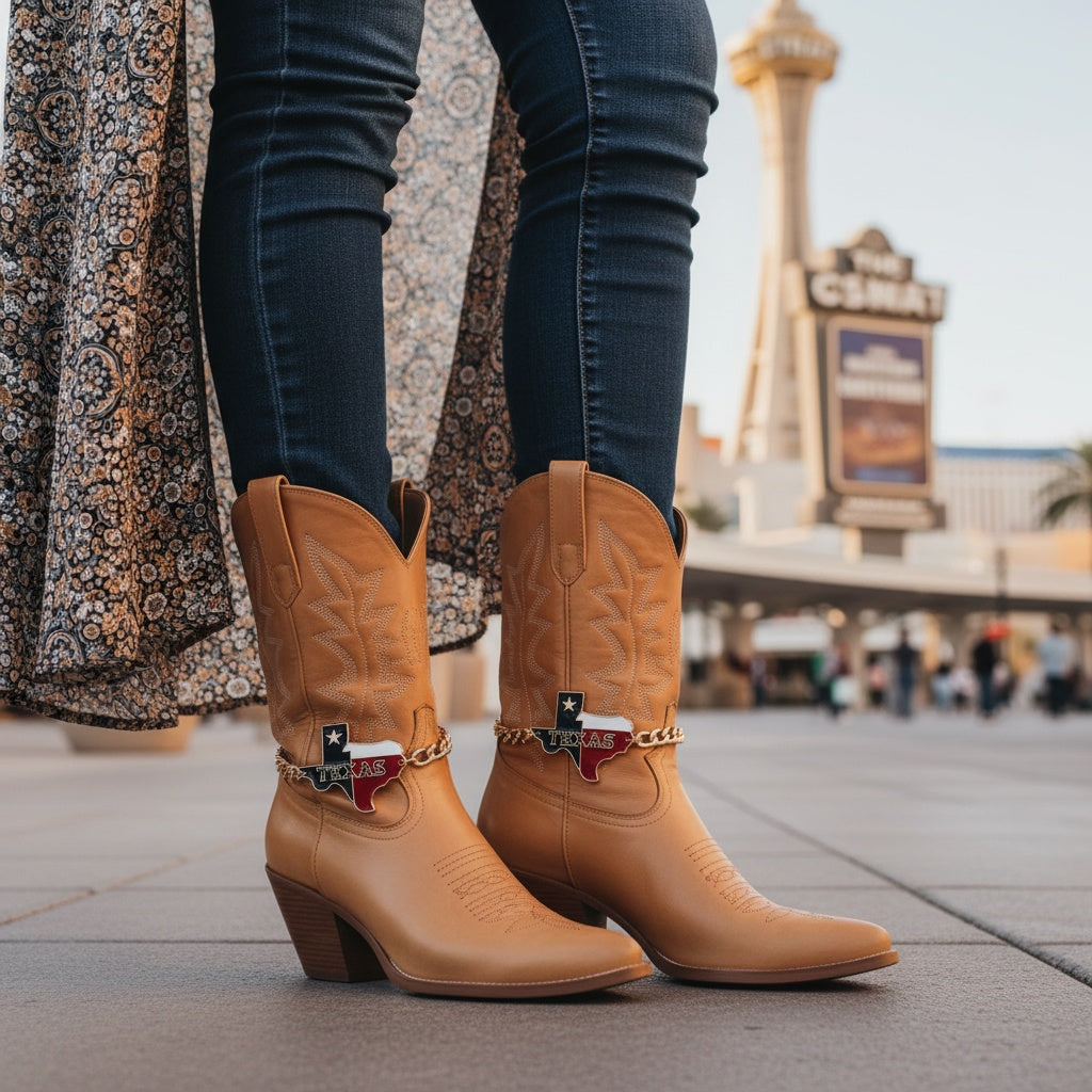 Brand New Women Gold Metal Boot Chain Bracelet Shoe Anklet State Of Texas Charm SET BC183