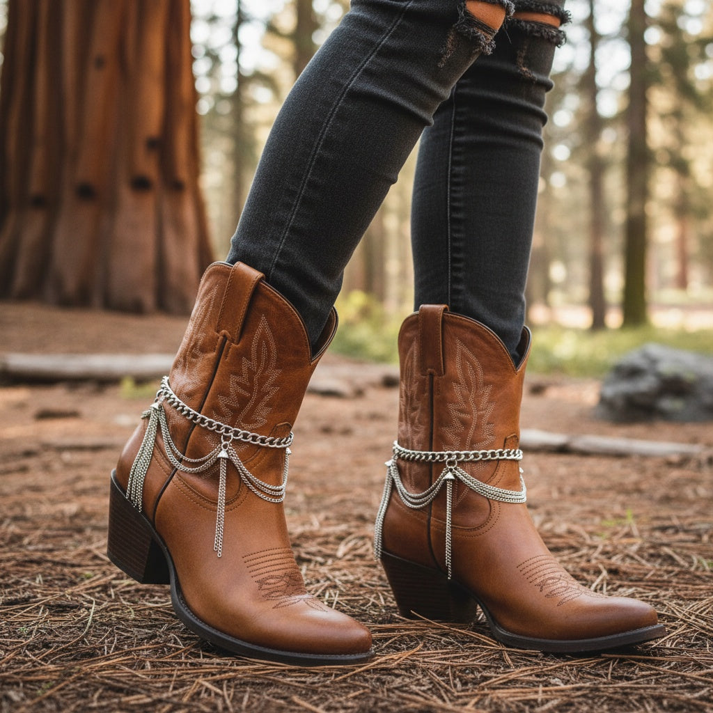 Brand New Women Silver Metal Boot Chain Bracelet Shoe Anklet Long Fringes Tassel + Waves Charm SET BC195
