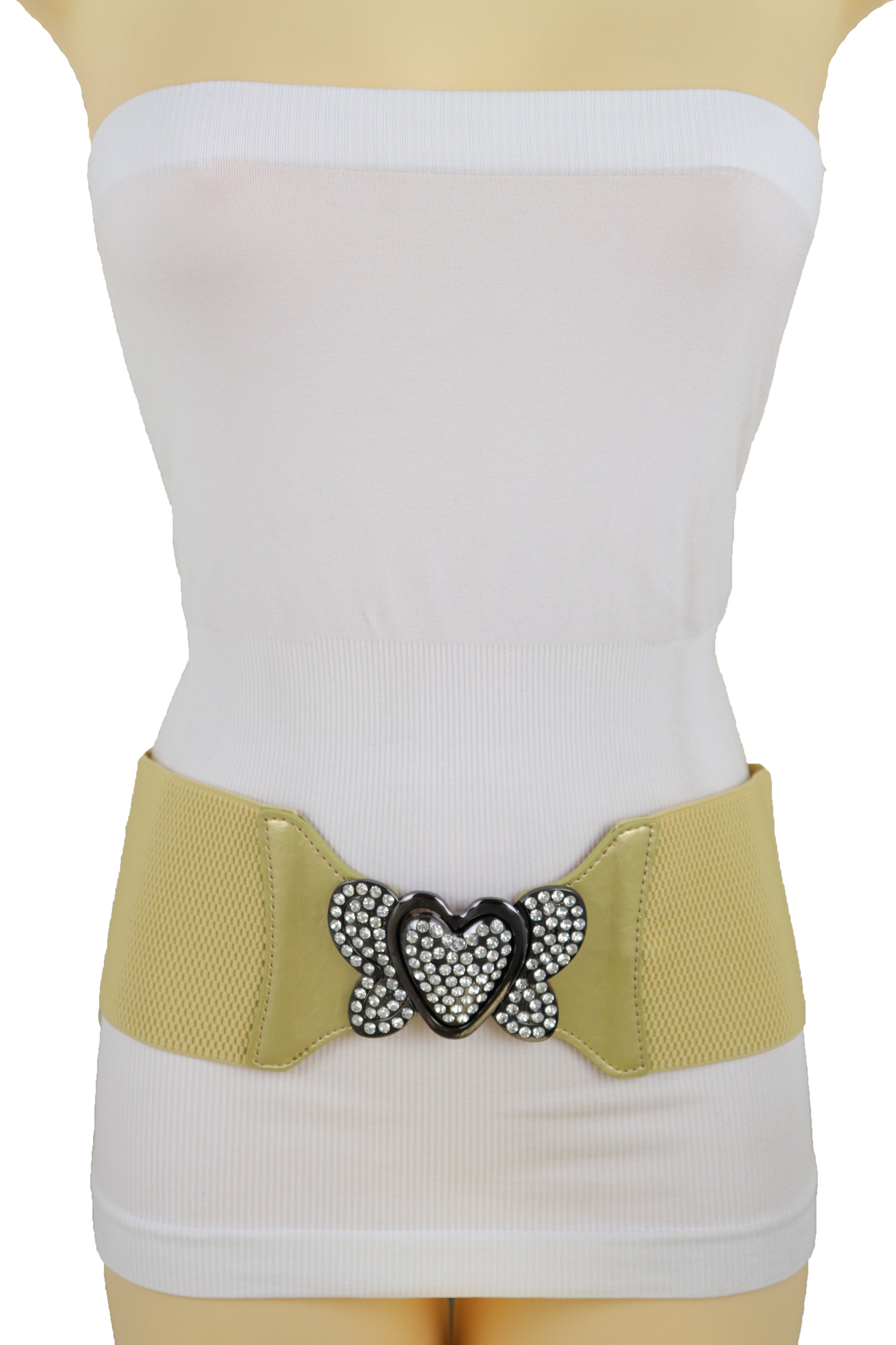 Wide Elastic Gold Fashion Hip High Waist Belt Butterfly Heart Buckle S M