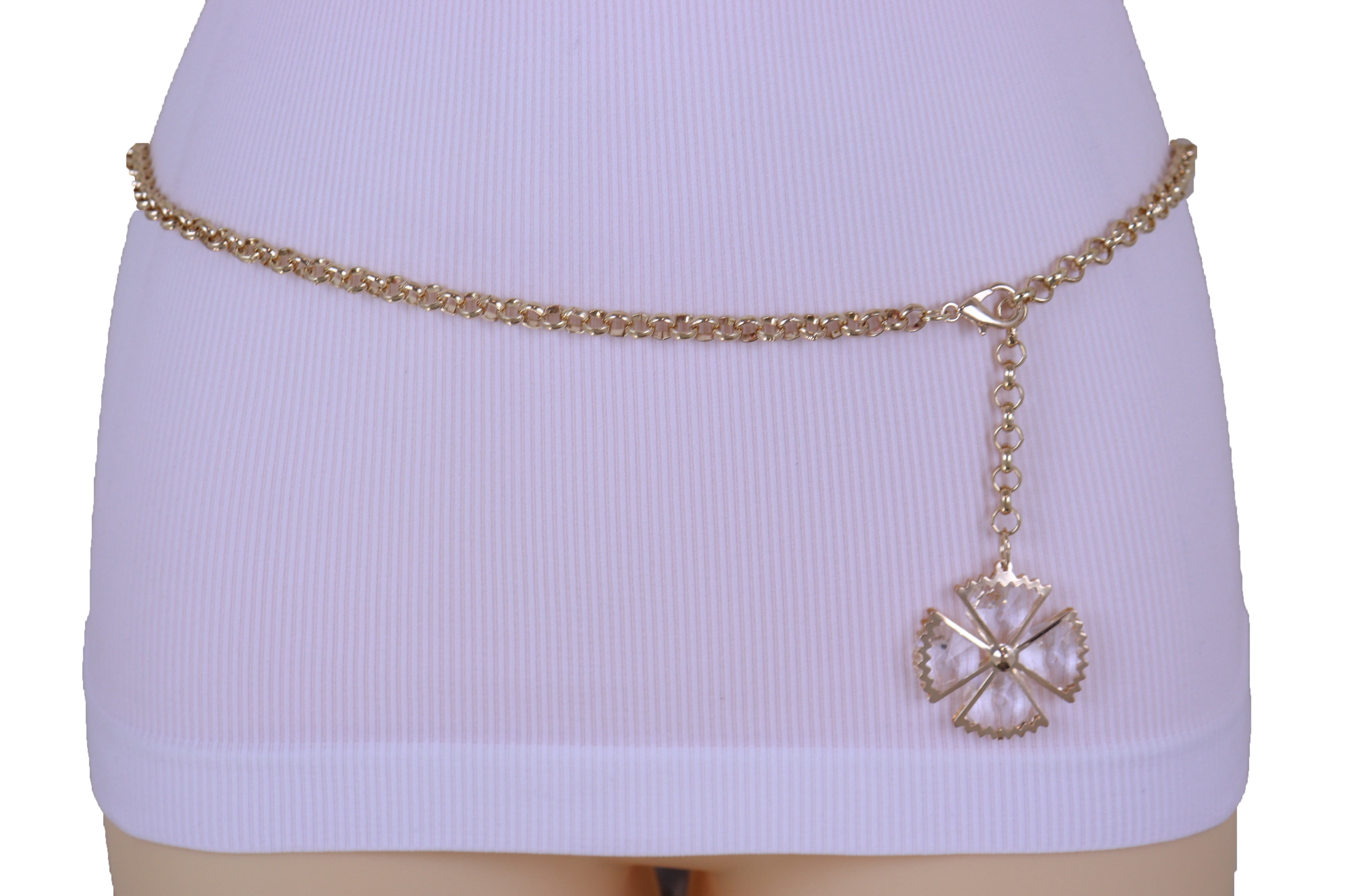 Dangle Flower Charm Skinny Gold Metal Chain Link Belt