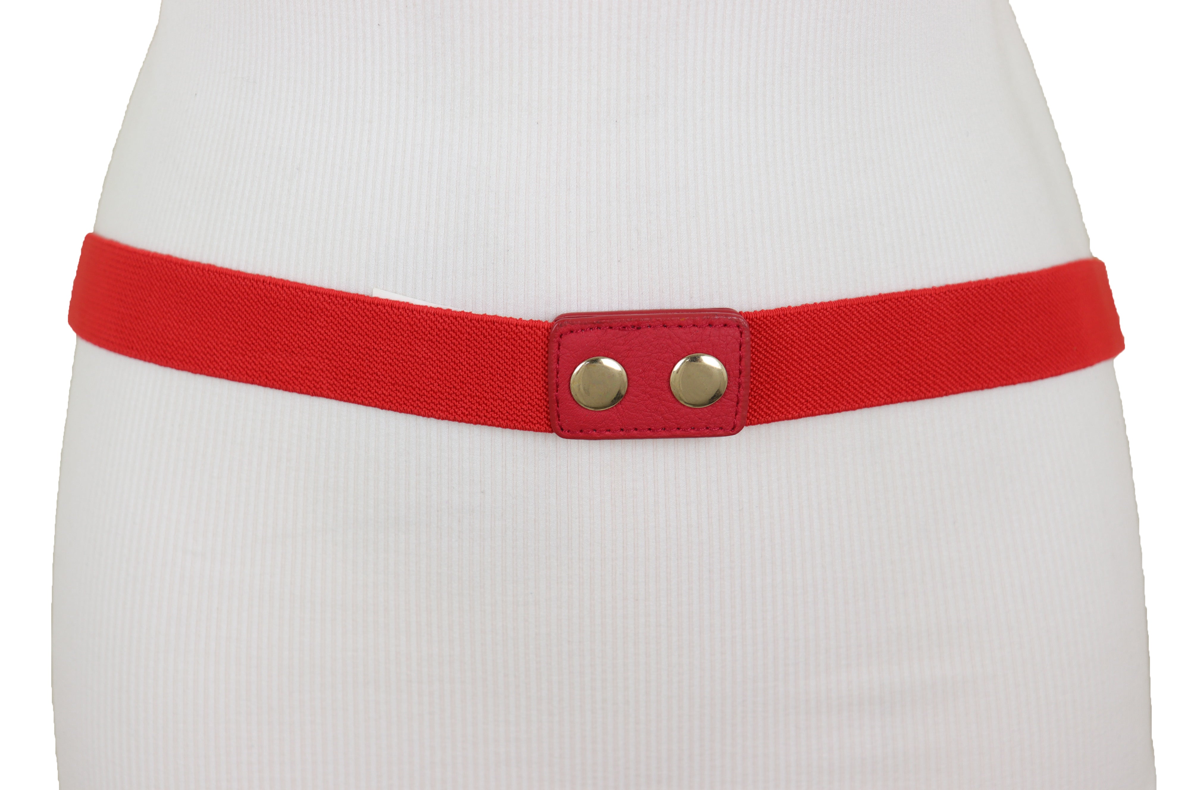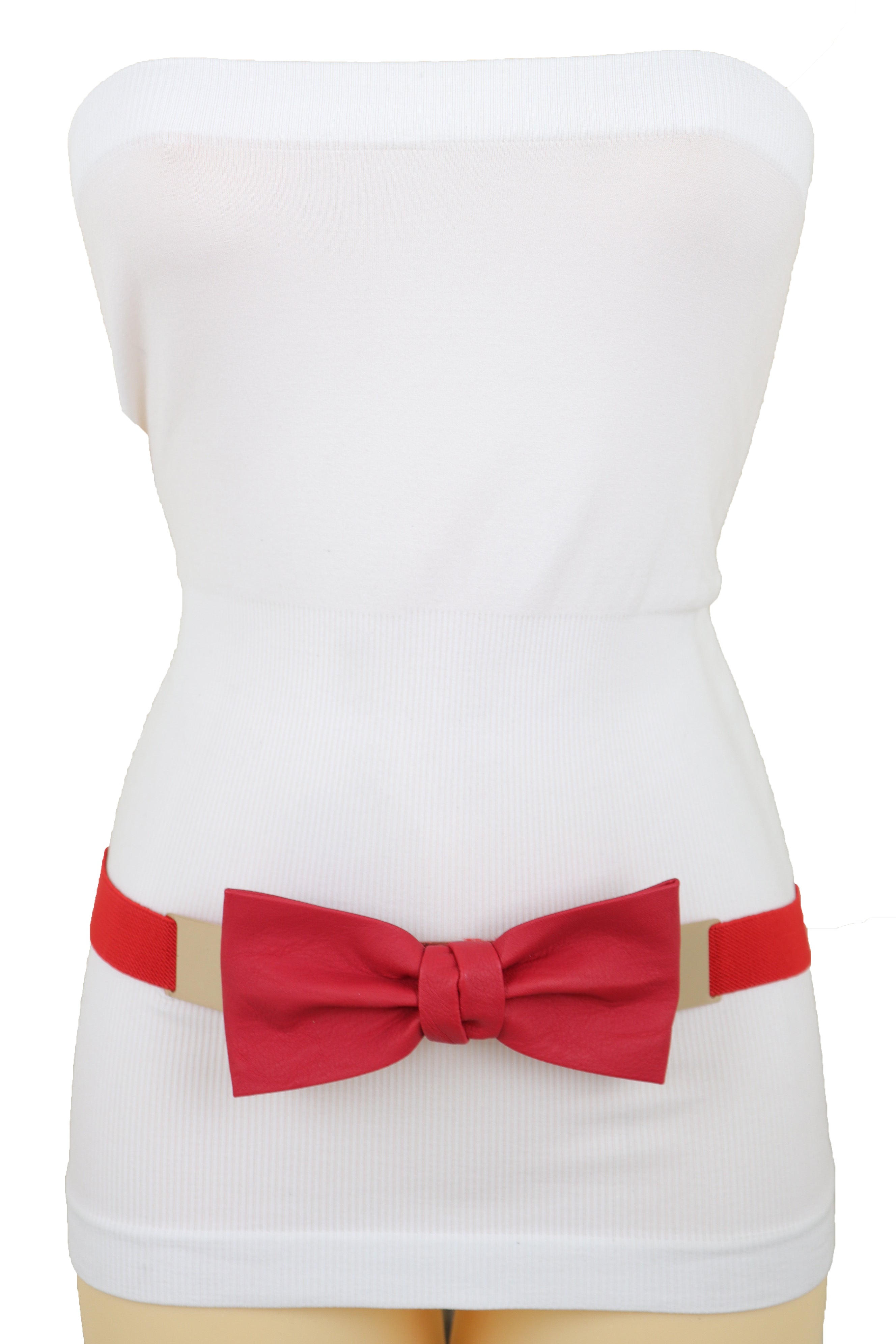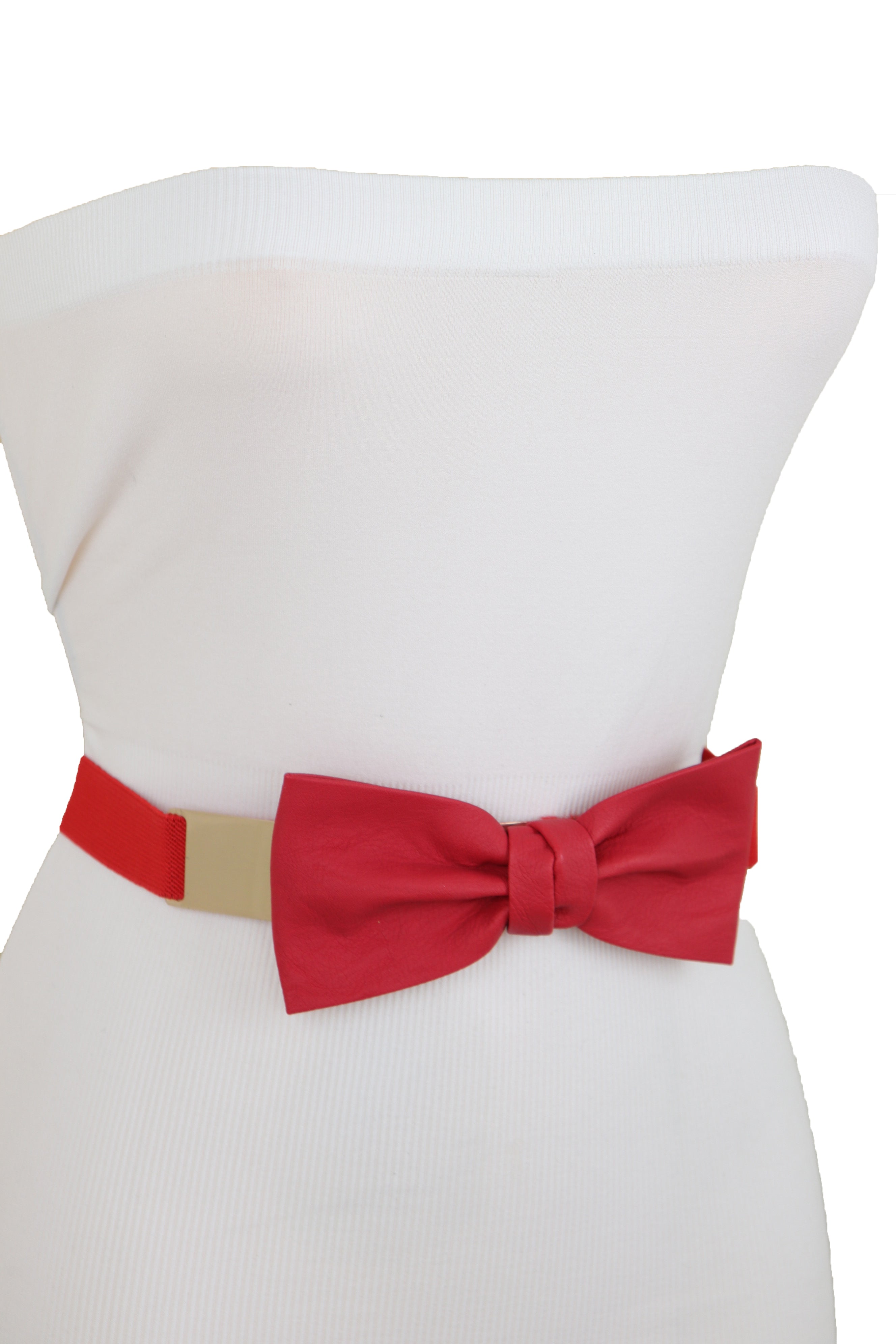 Women Fashion Belt Gold Plate Elastic Band Red Color Bow Tie Buckle Fit Size S L