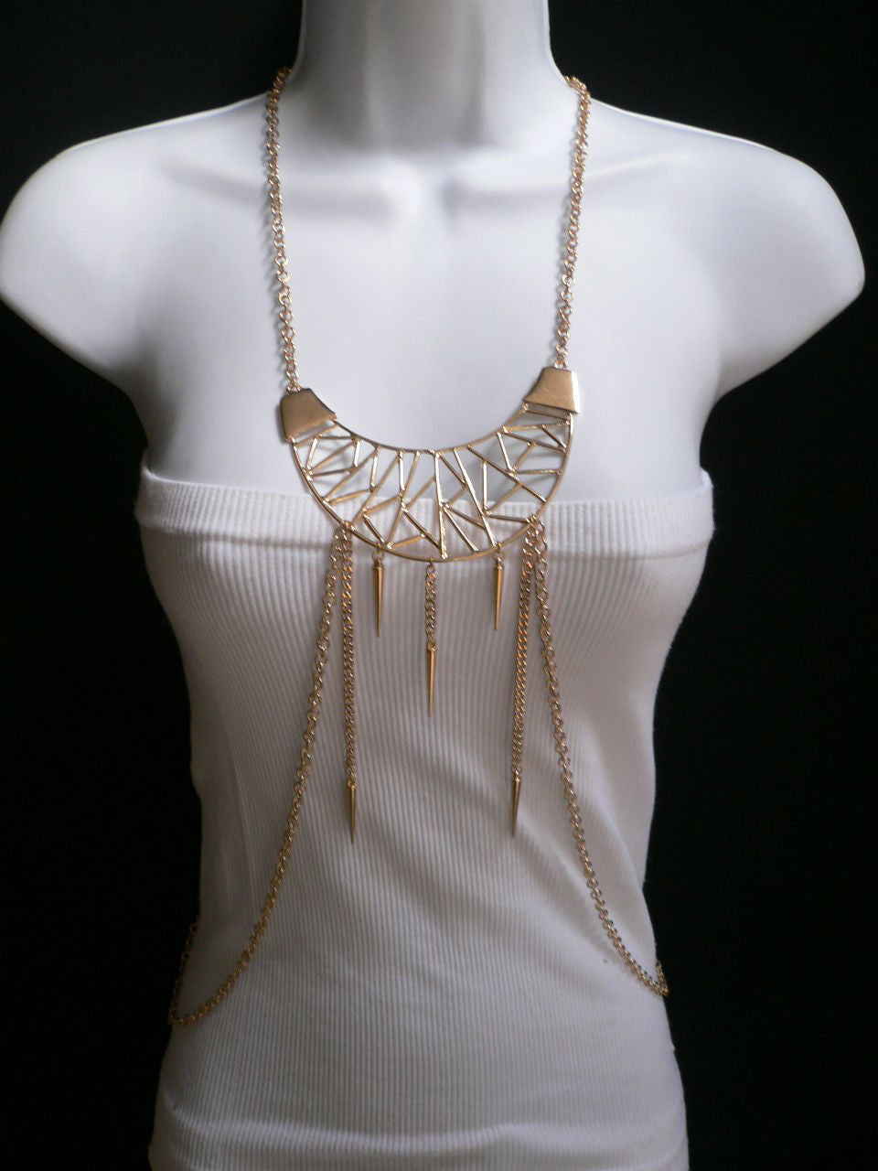Gold Metal Body Chains Large Moon Geometric Shapes Pendant Long Necklace