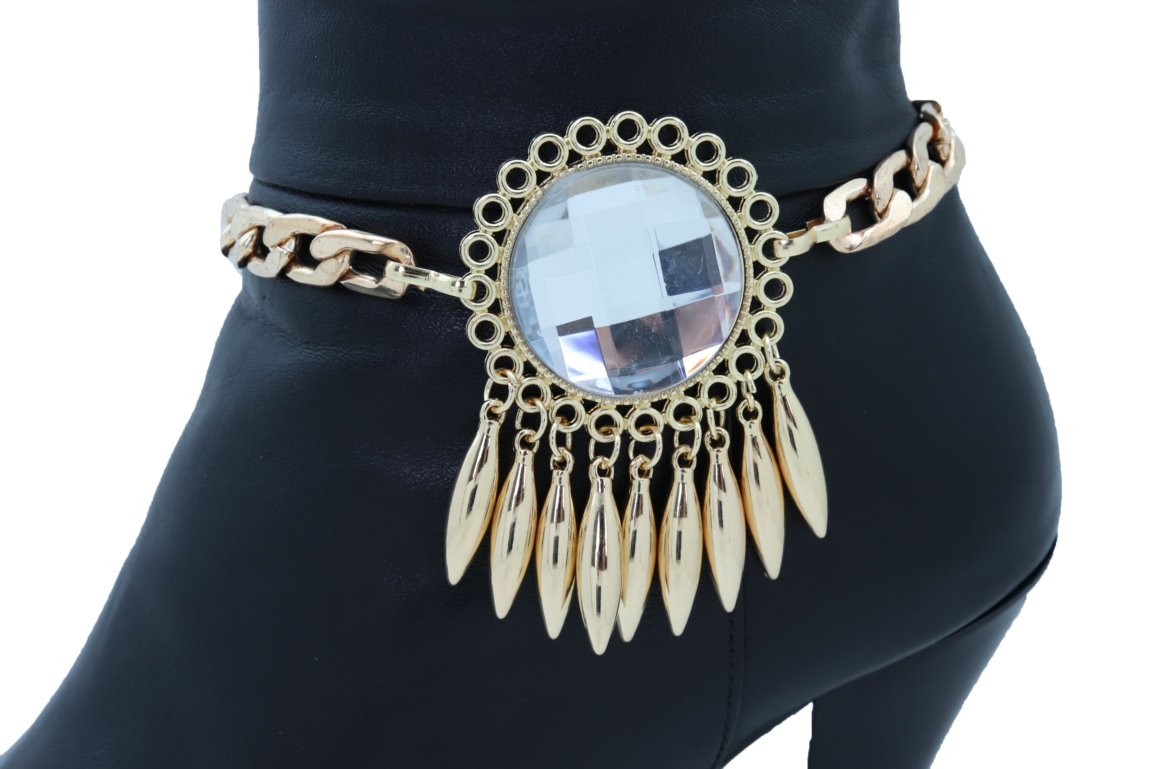 Gold Metal Boot Chain Bracelet Shoe Anklet Bling Sun Flower Shiny Charm