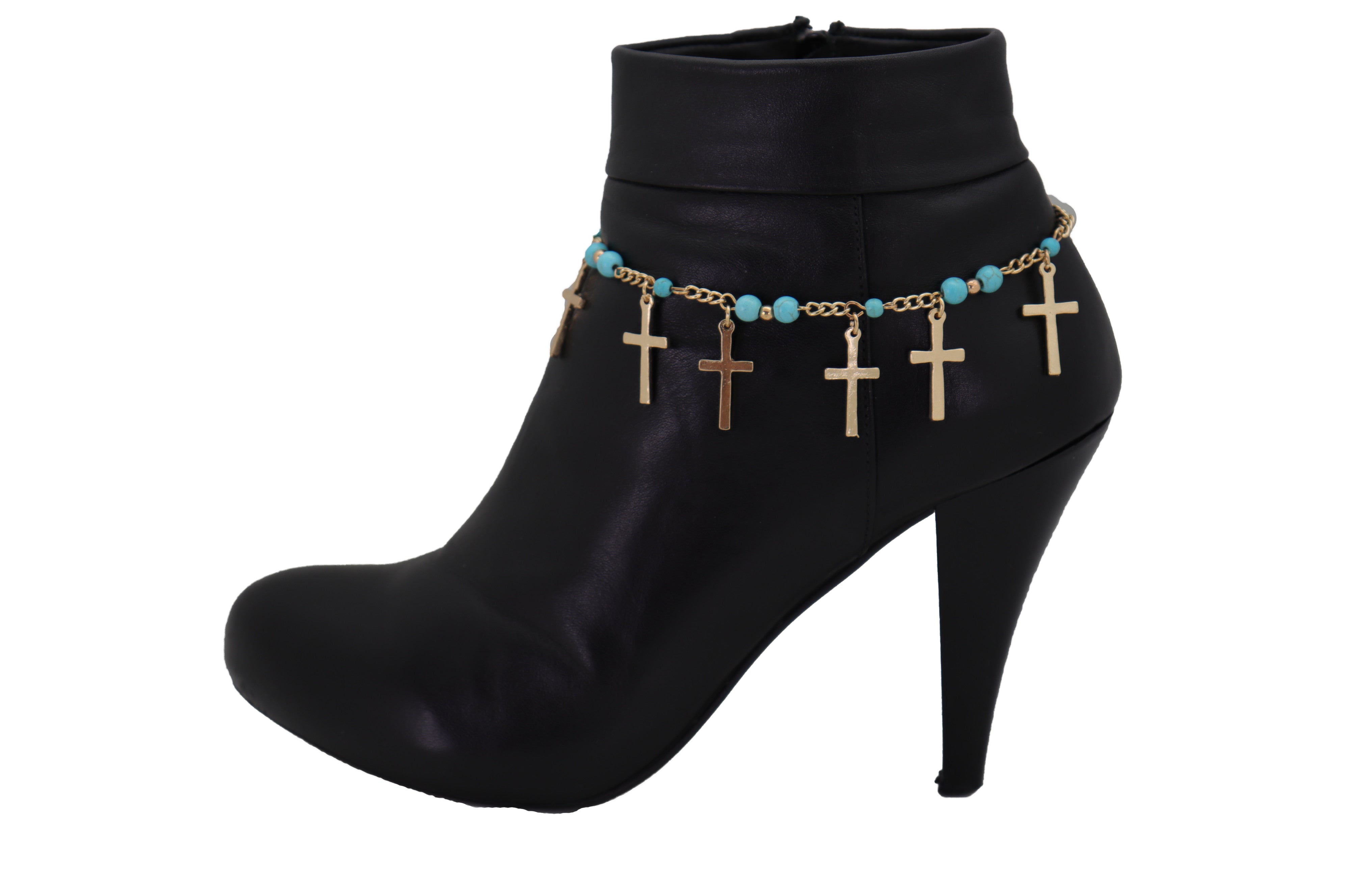 Brand New Fancy Western Fashion Sexy Boot Metal Chain Links Fancy Bracelet SOLD INDIVIDUALLY Western Bling Fashion Single Boot Strap Chain Bracelet - Metal chain strand charm pendant We make this item ourselves SOLD INDIVIDUALLY - Made in the USA If you want to make them smaller or bigger please let us know (we will add or take of some of the extension chain) You are buying a single strap bracelet (one side): Condition: Brand new Color: Gold metal chain links and charms + turquoise blue beads