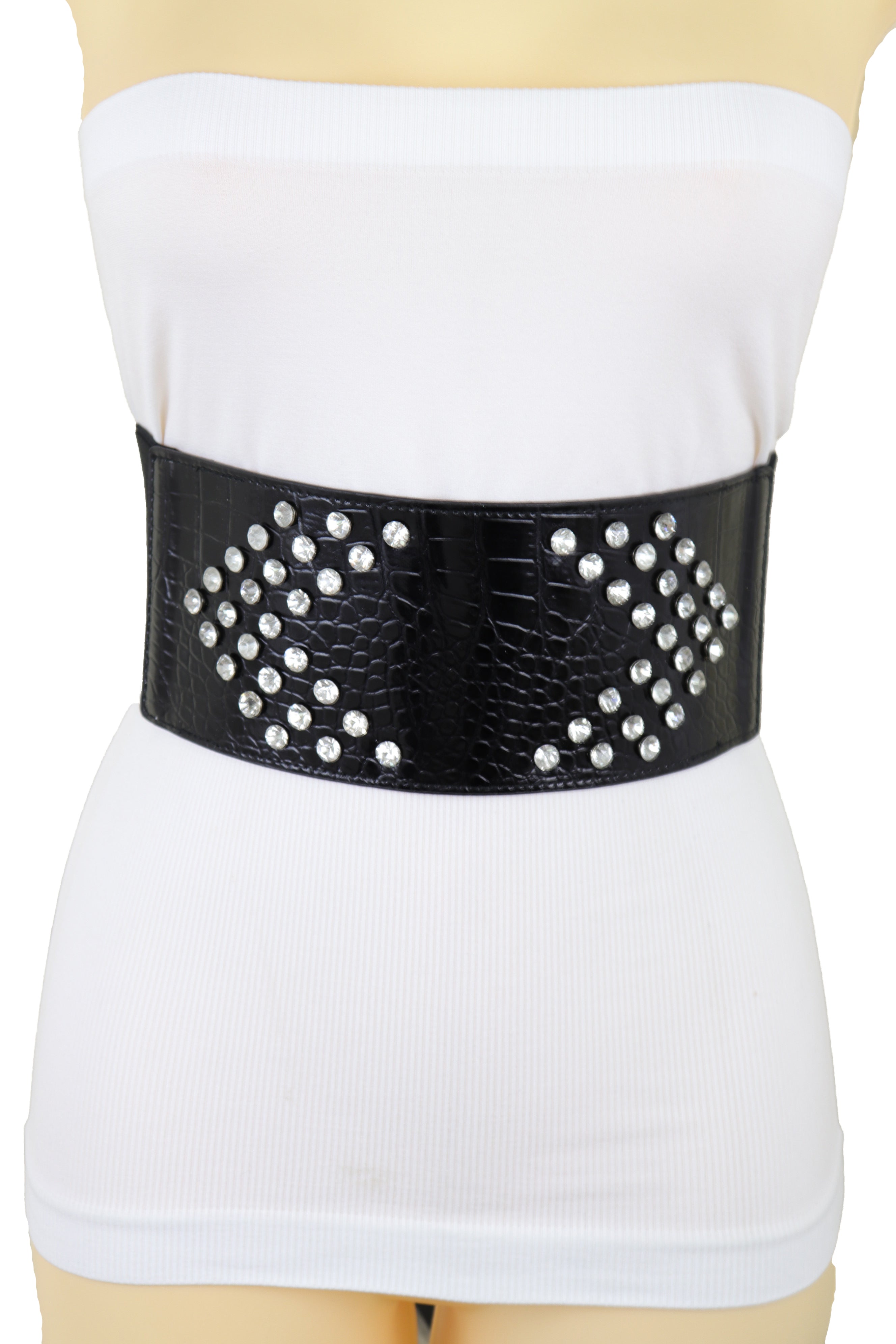 Wide Faux Leather Black Elastic Belt Side Arrows S M