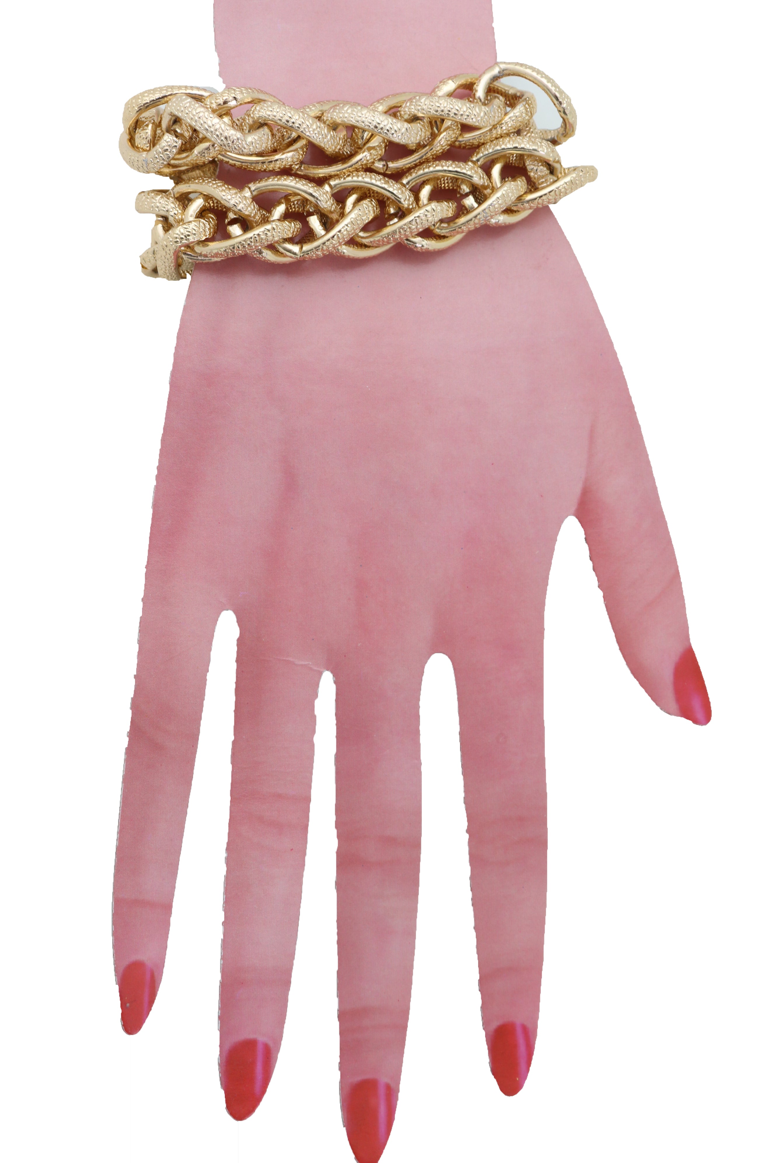 Bracelet Gold Textured Chain Links Double Strands Bulky