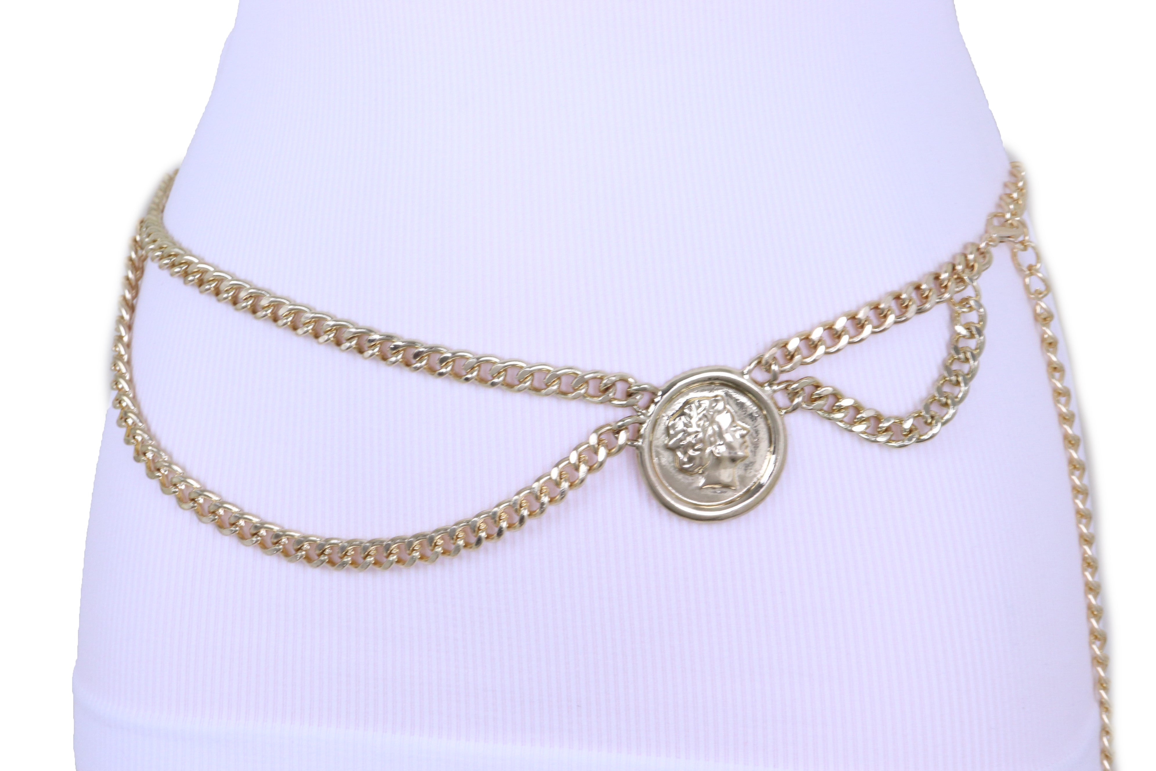Medallion Coin Charm Side Wave Gold Metal Chain Belt