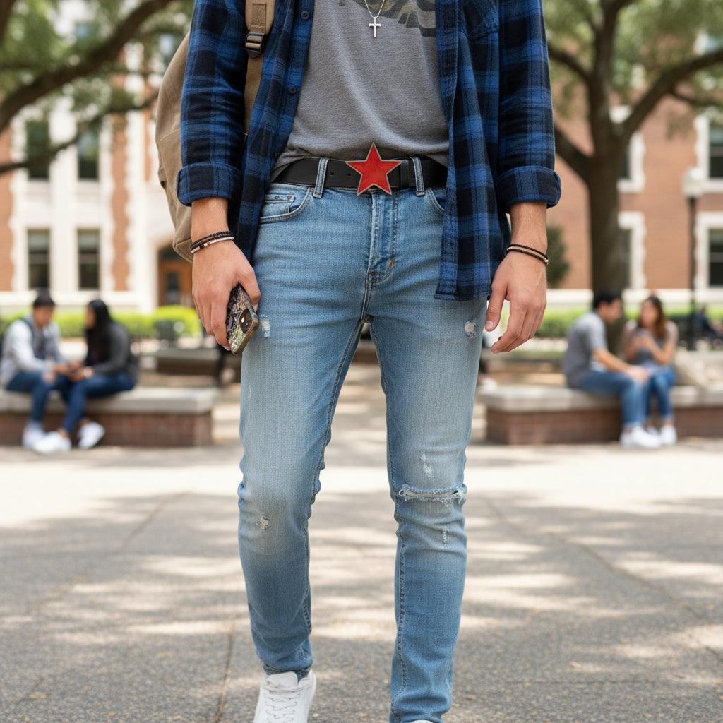 Dress it up with a crisp shirt and sport coat for a casual office Friday, or pair it with a pearl-snap, cowboy hat, and boots for a honky-tonk weekend. It works just as well for rodeos and country concerts as it does for backyard grilling, road trips, and everyday errands. Wherever you wear it, the red star at your waist says you’re not afraid to stand out.
