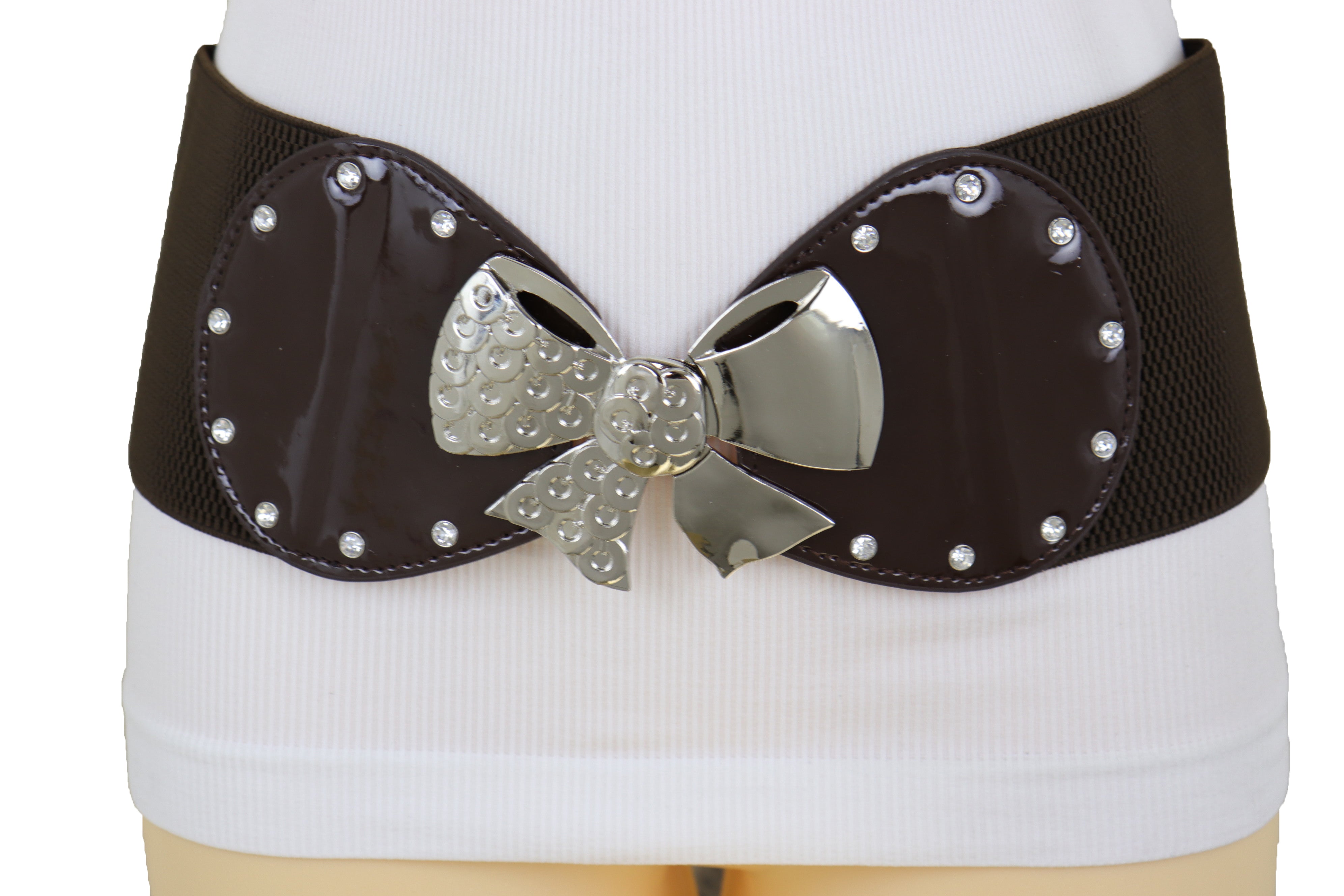 Dark Brown Wide Fashion Belt Silver Metal Bow Tie Ribbon Buckle Size S M