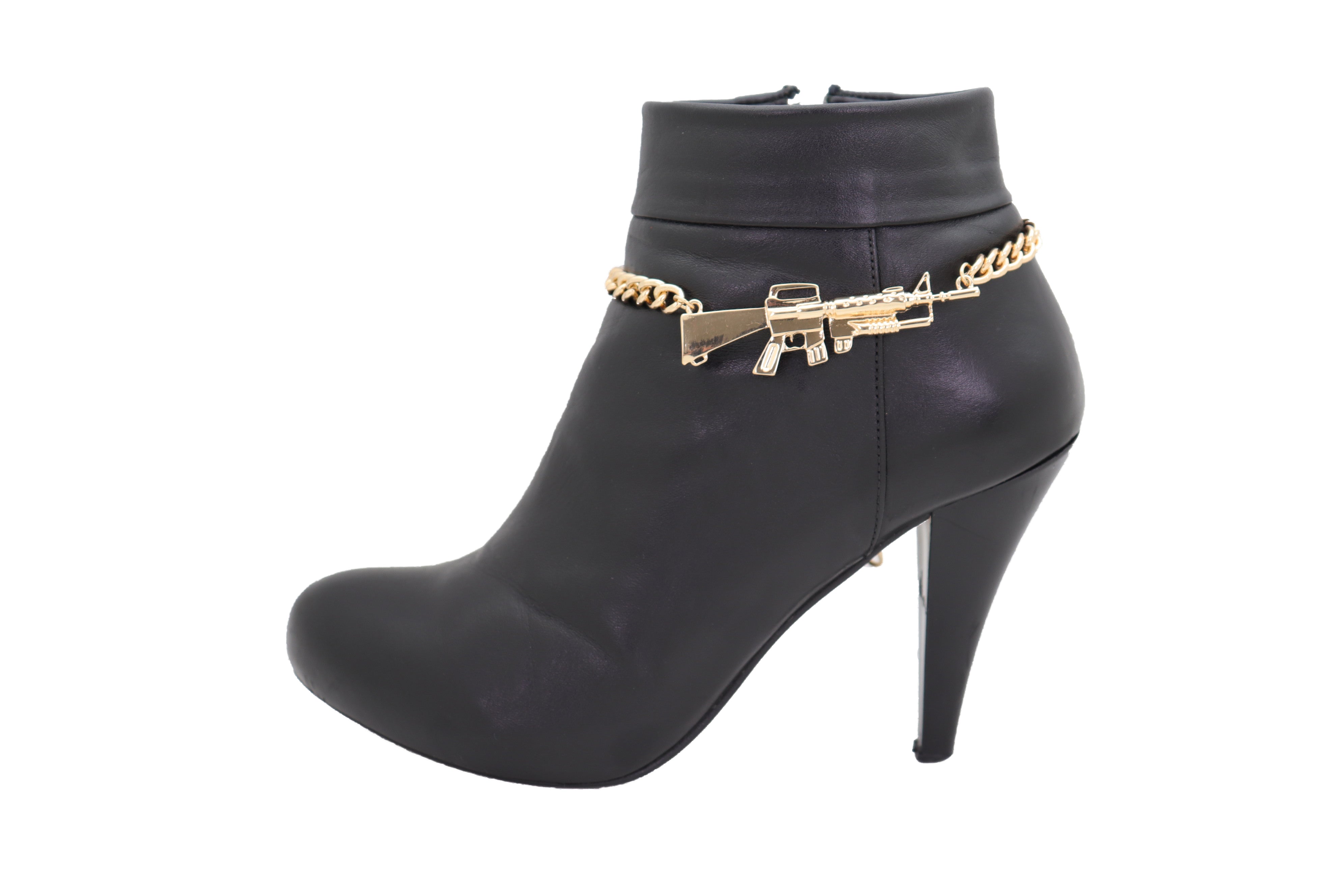 Gold Metal Boot Chain Bracelet Shoe Jewelry Weapon M16 Gun Rifle Charm
