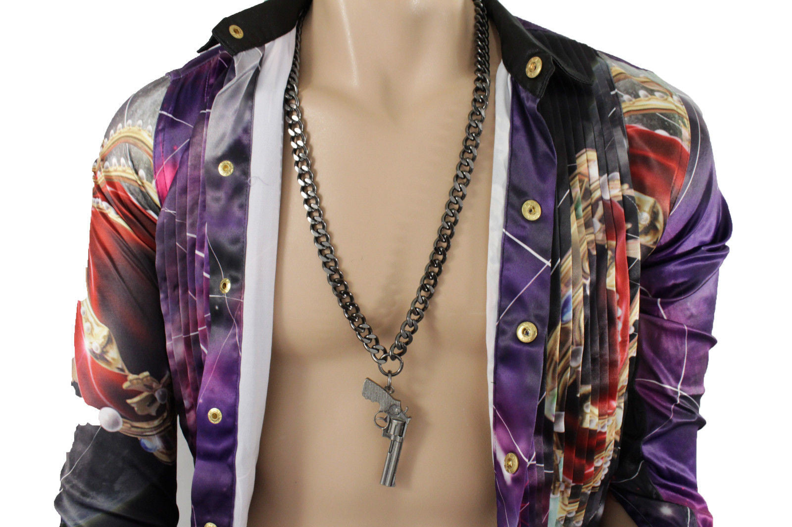 Pewter Metal Chain Weapon Western Pistol Gun Pendant Soldier Long Necklace Men