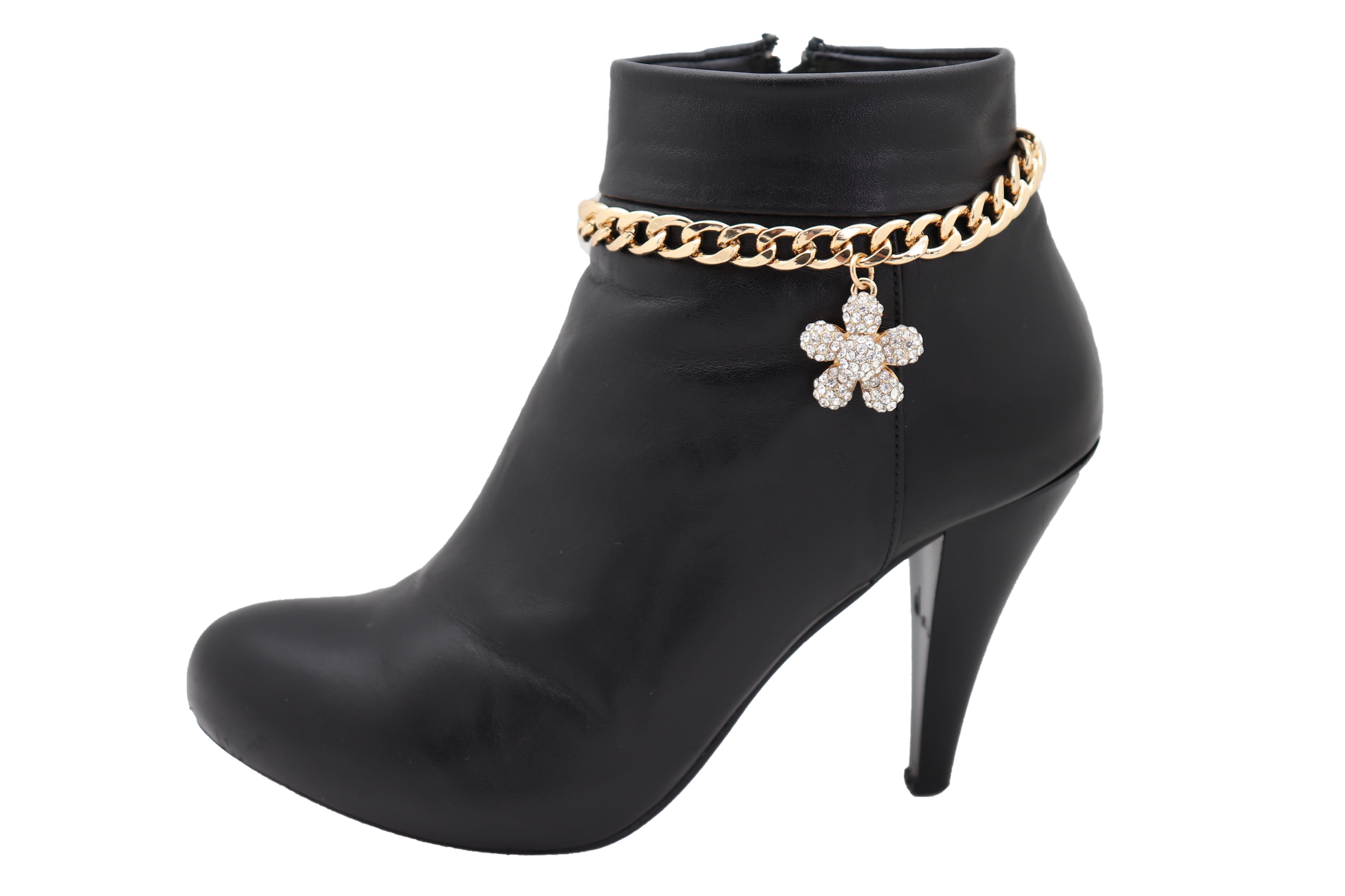 Western Bling Fashion Single Boot Strap Chain Bracelet - Metal chain strand charm pendant