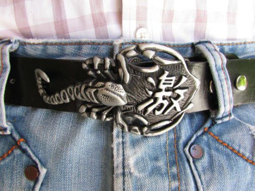 Silver Metal Big Long Black Scorpion Belt Buckle Men Fashion Cowboy Western Accessories