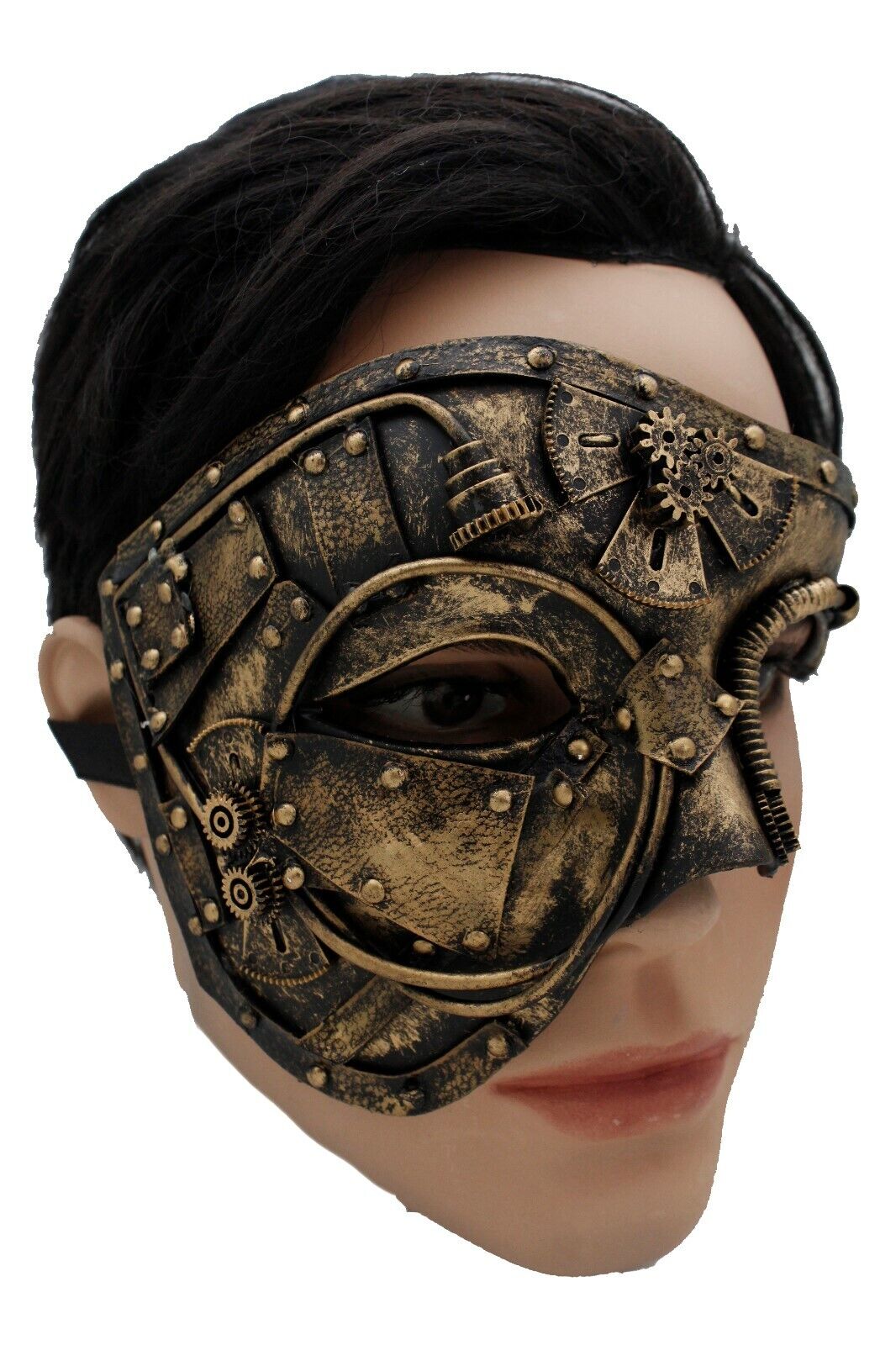 #HalloweenCostume #SteampunkMask #MardiGrasStyle #FuturisticFashion #PartyAccessories #GoldMask