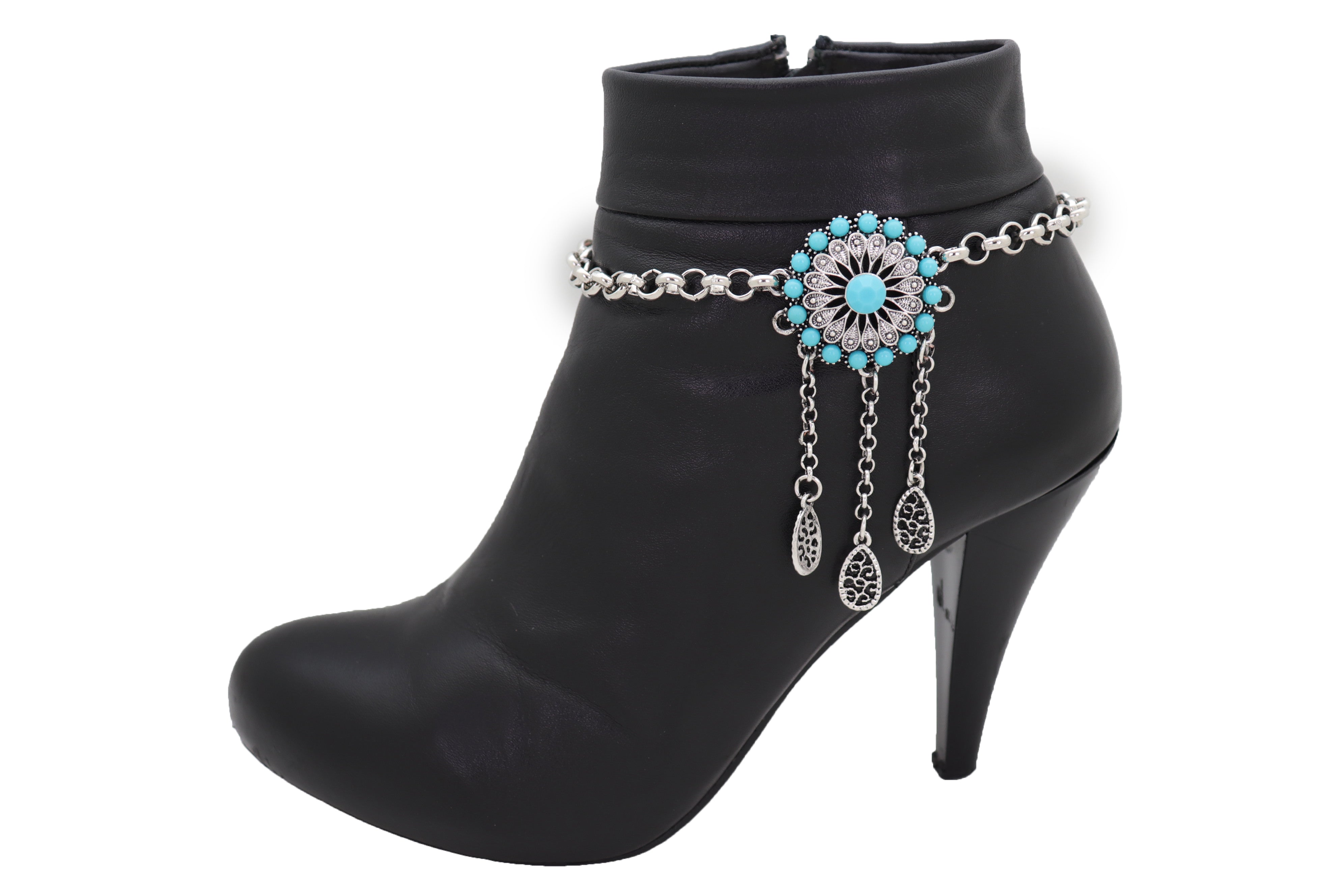 Silver Turquoise Blue Anklet Shoe Charm Boot Metal Chains Bracelet New Women Western Fashion - alwaystyle4you - 12