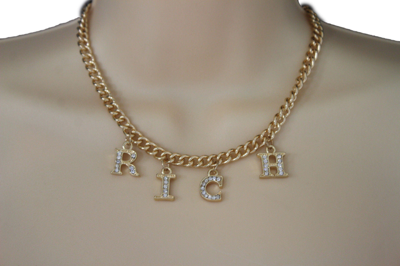 Gold Metal Chain RICH Letters Pendant Short Necklace