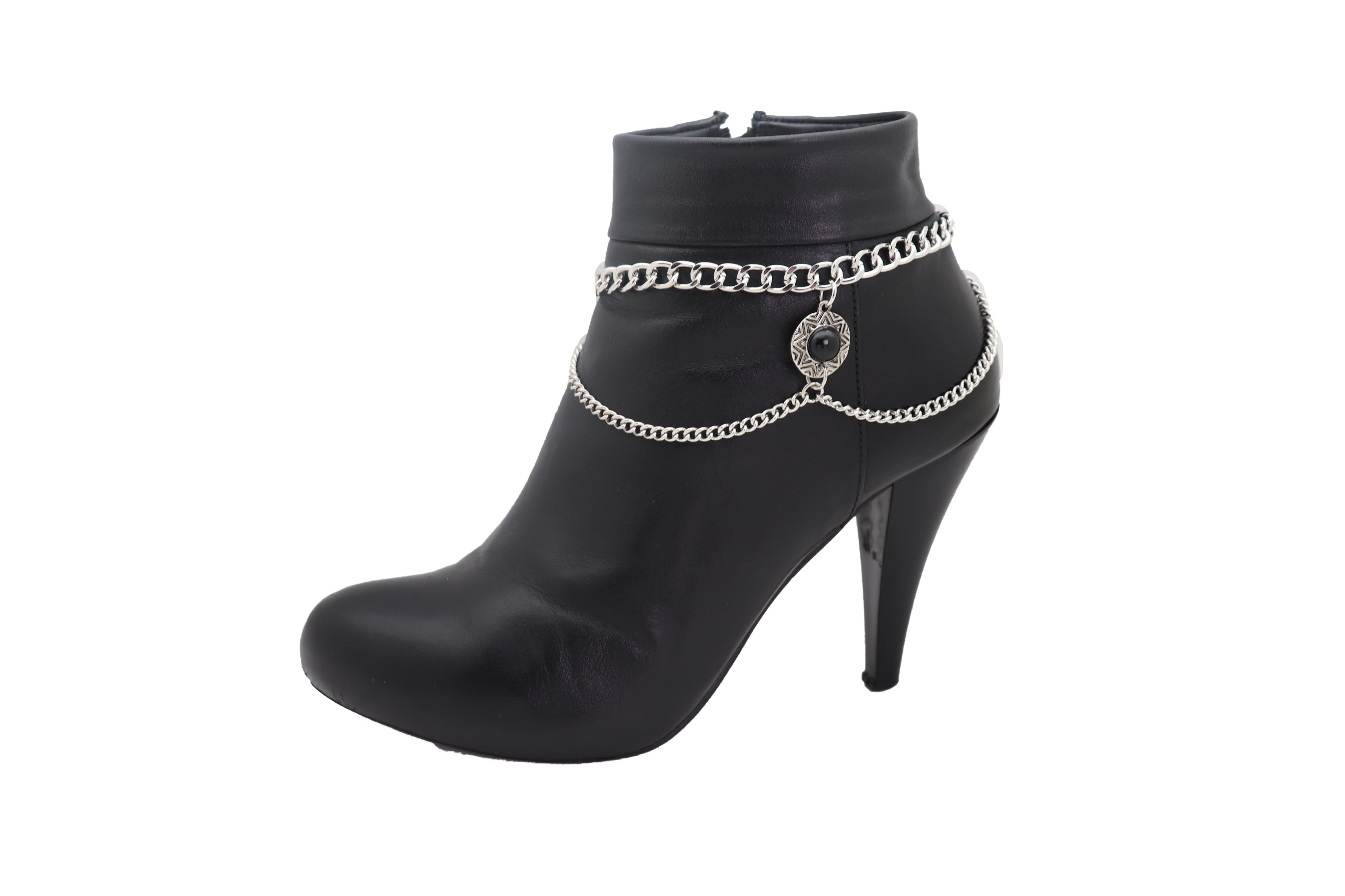 Silver Metal Boot Chain Bracelet Shoe Ethnic Coin Black Color Charm Anklet