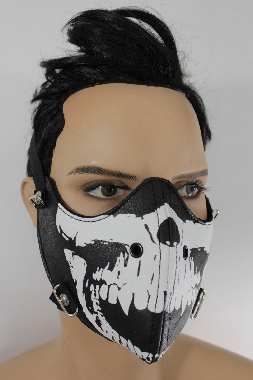 Black White Skull Print Muzzle S&M Rave Goth Face Mask Men Halloween Costume Carnival Accessories