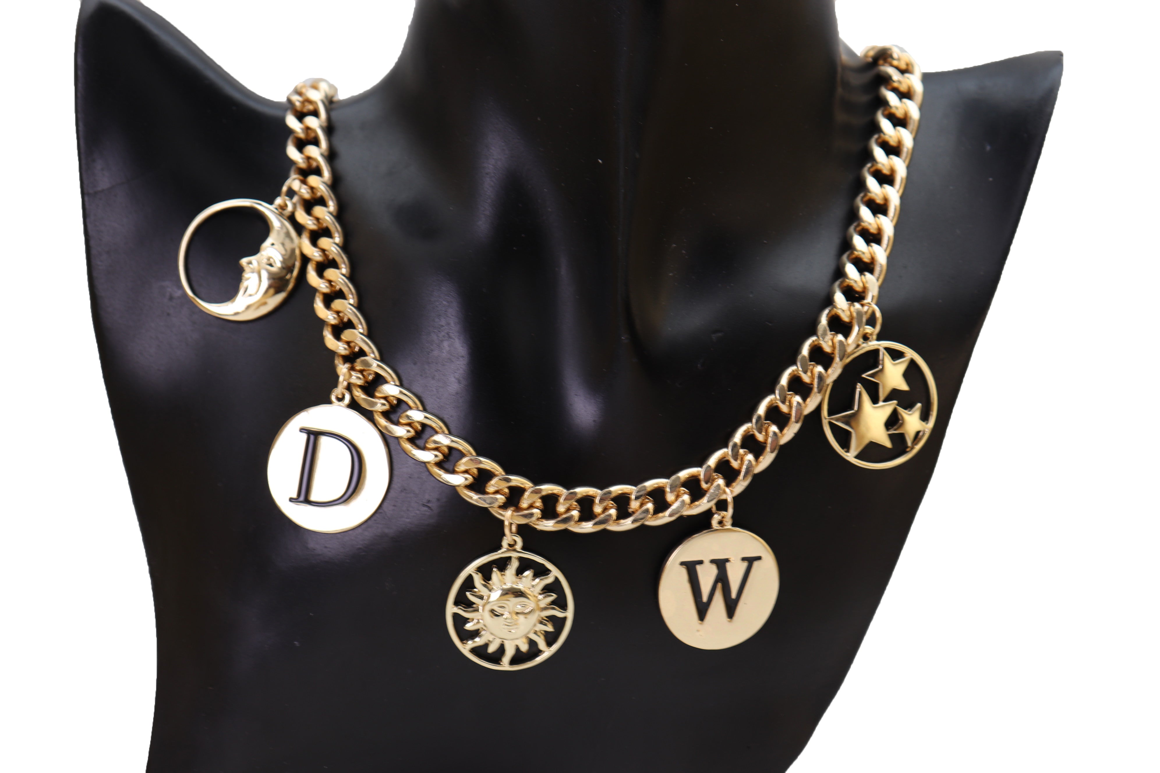Unique and special fashion necklace with great pendant charms for day or night wear all year around seasons summer spring winter and fall Style : Fashion Condition : Brand New Color : Gold metal chain and charms Chain size : About 13" -15" Necklace Drop : About 7" Pendant Size: 1" X 1" Very Special And Fashionable Necklace Beautiful For Every Day And For A Going Out Night. |
