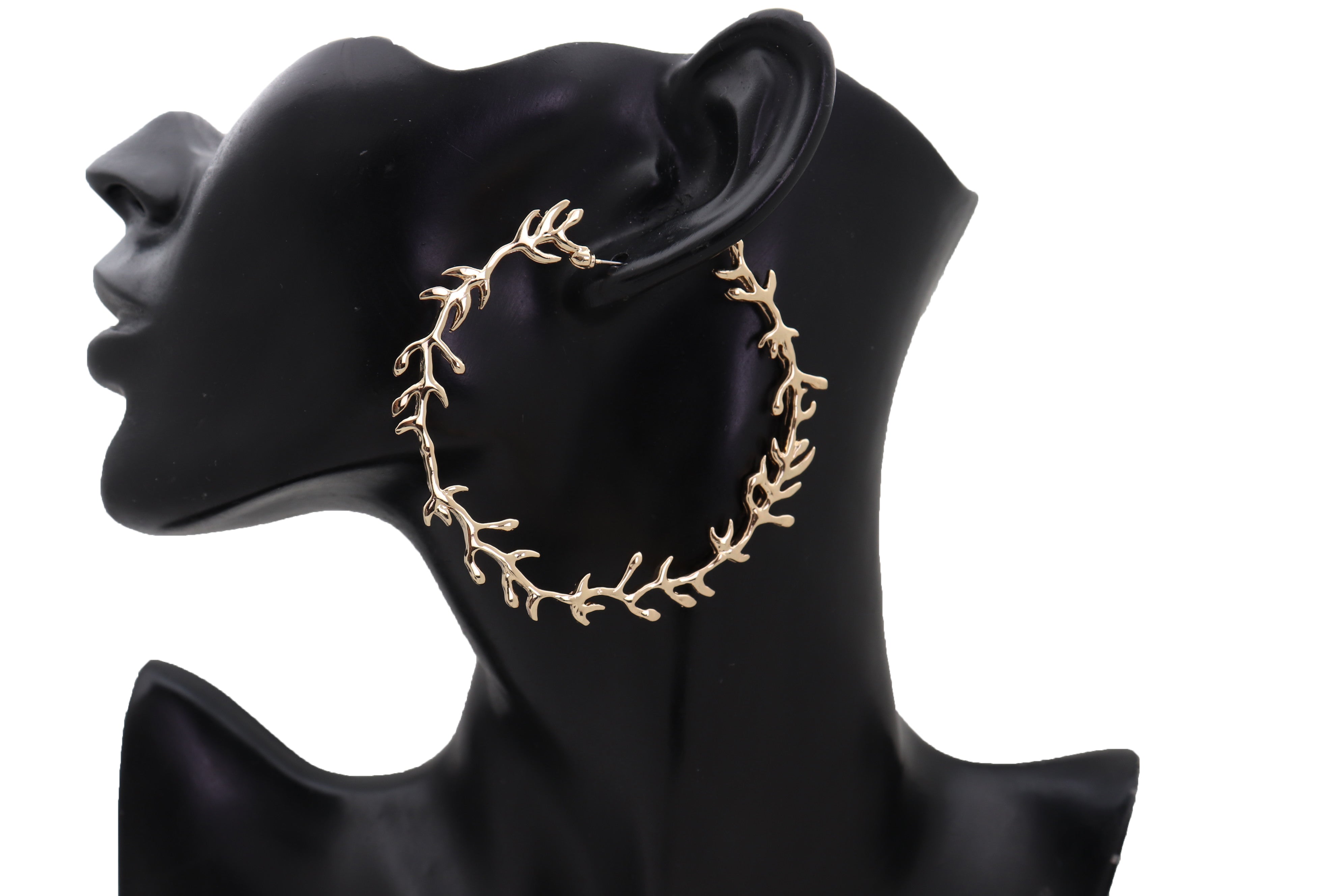 Women Hoop Greek Style Fashion Earrings Set Big Round Greece Branches Style Earring Set Condition: Brand new Color: Gold metal Earrings size: 3" X 3" Women's statement earrings fashion jewelry |