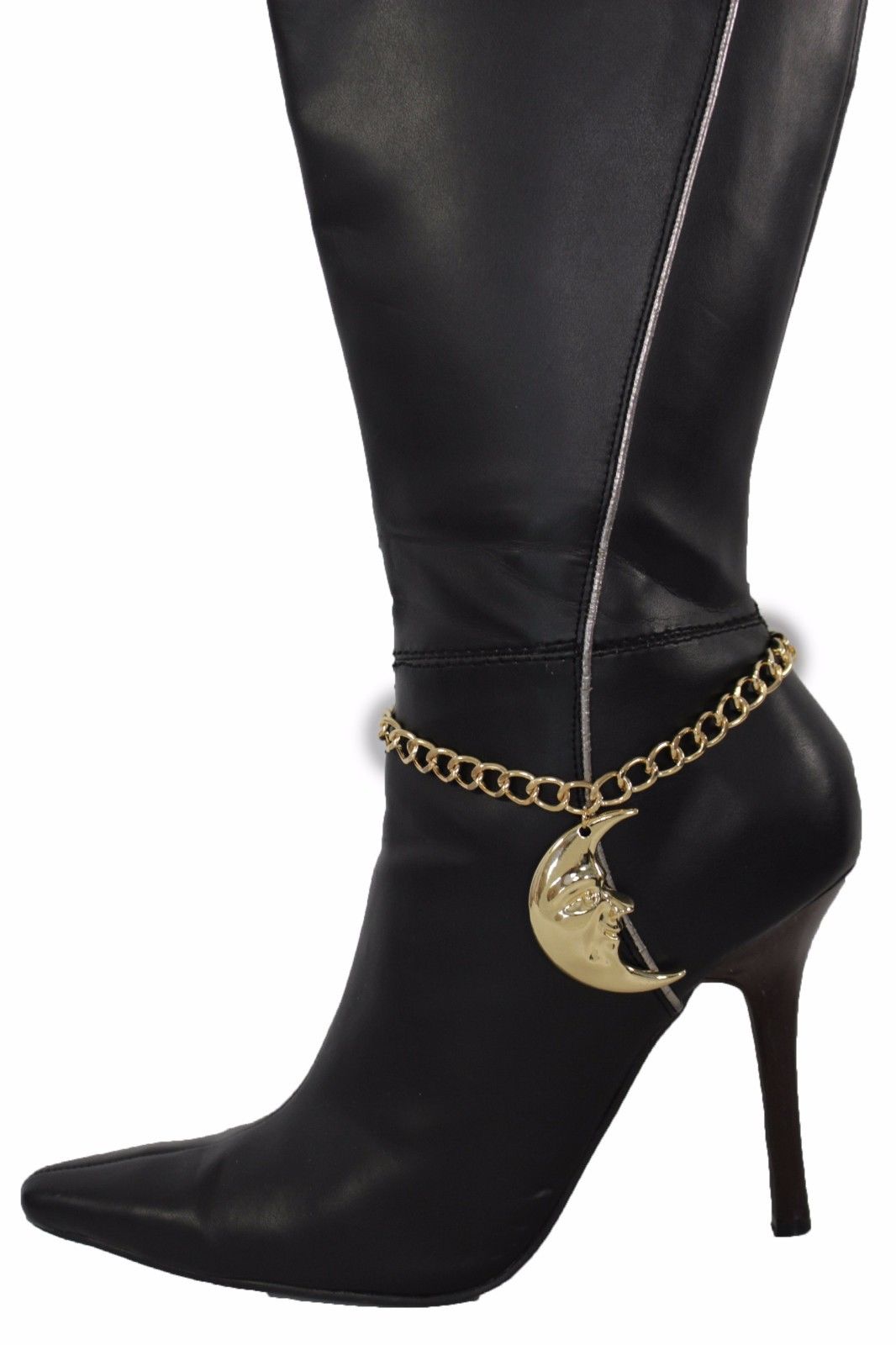 Women Gold Metal Boot Chain Bracelet Anklet Shoe Big Shinny Moon Charm Hot Fashion