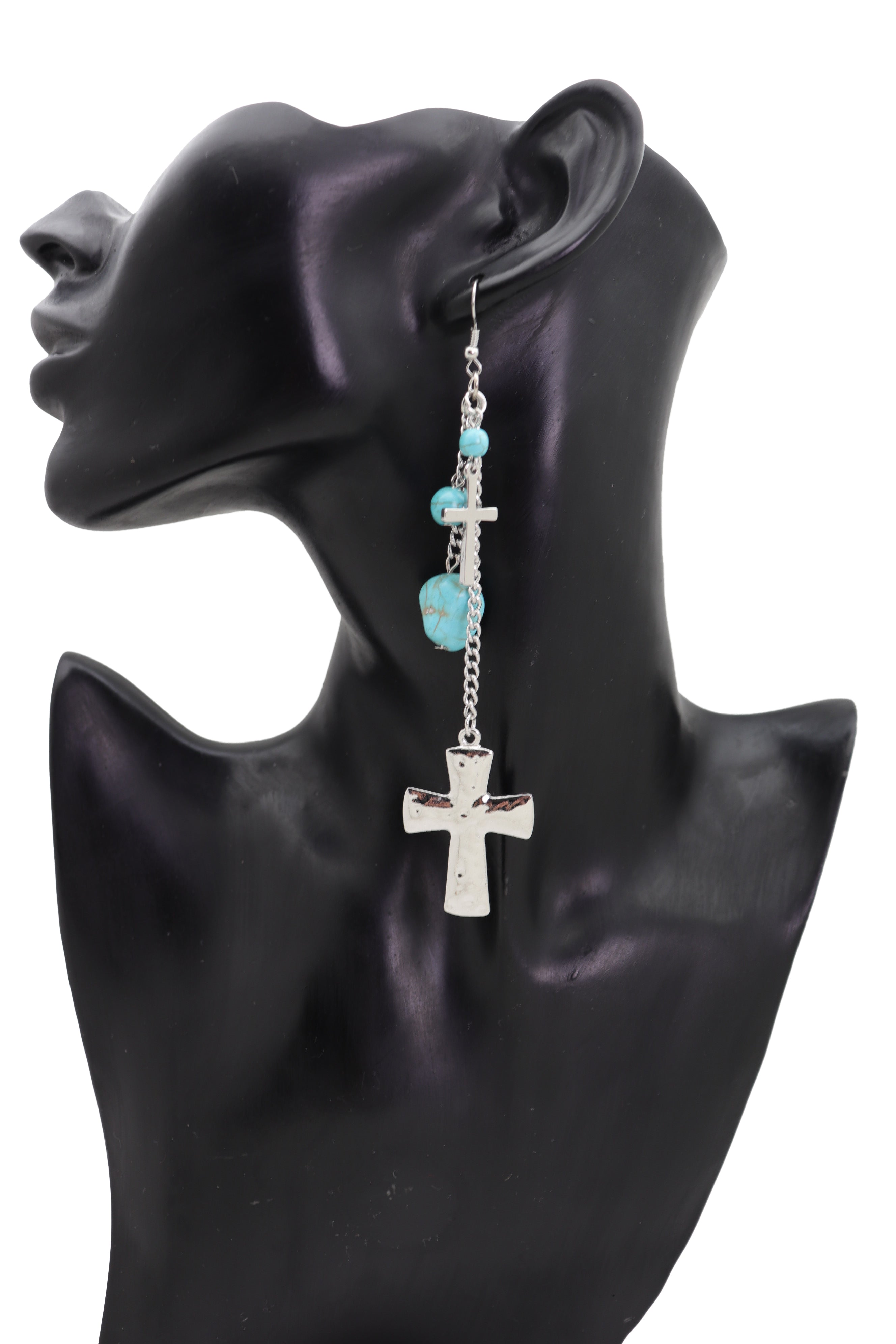 Color : Silver metal chain links and charms + turquoise blue beads