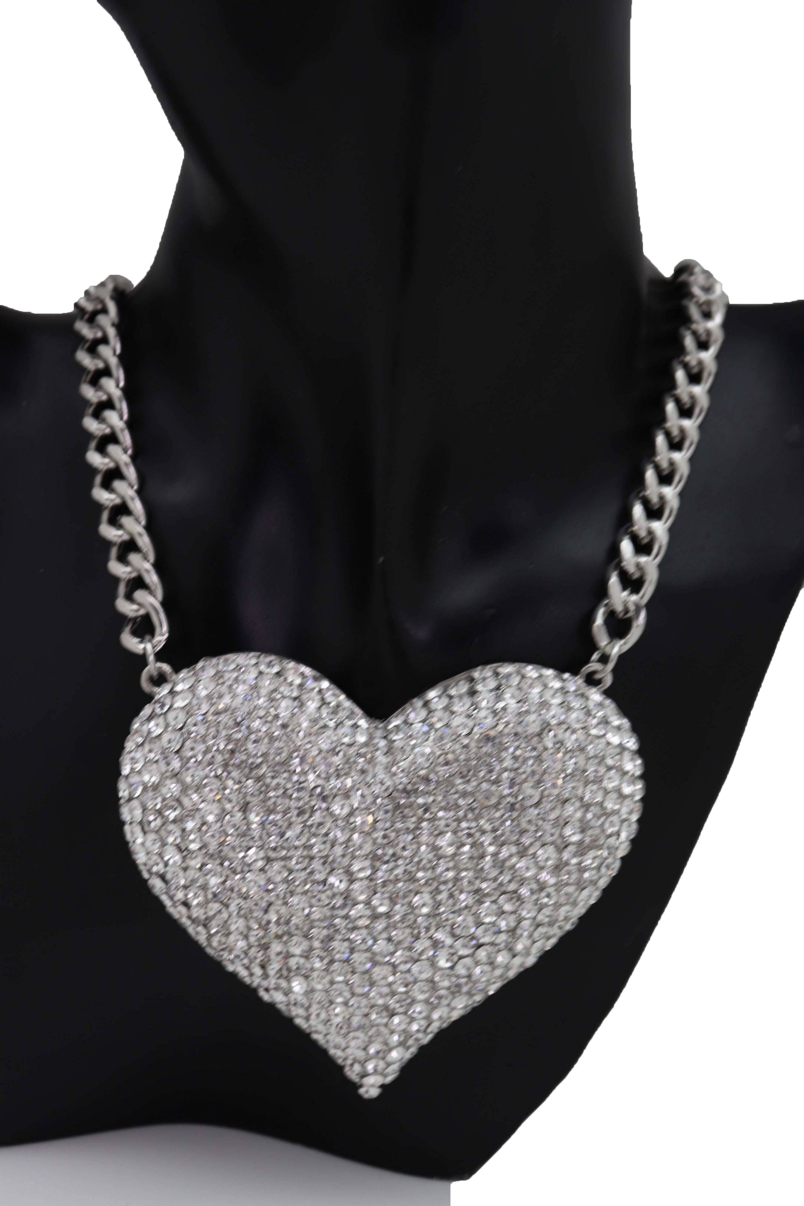 Silver Metal Chain Fashion Necklace Dressy Bling Heart Love Charm Pendant
