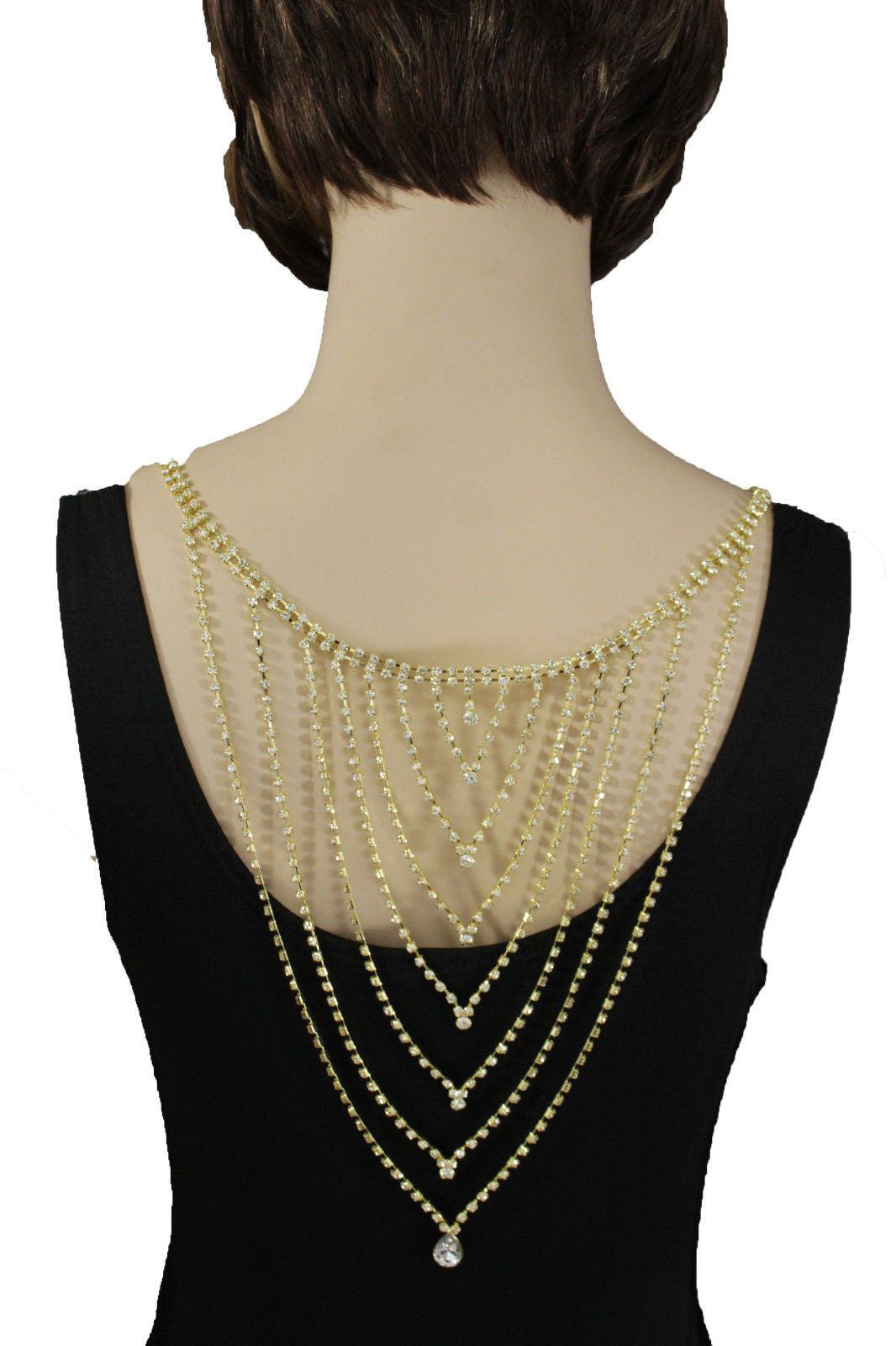 Gold Metal Hot Long Open Back Silver Rhinestones Drop Necklace Wedding