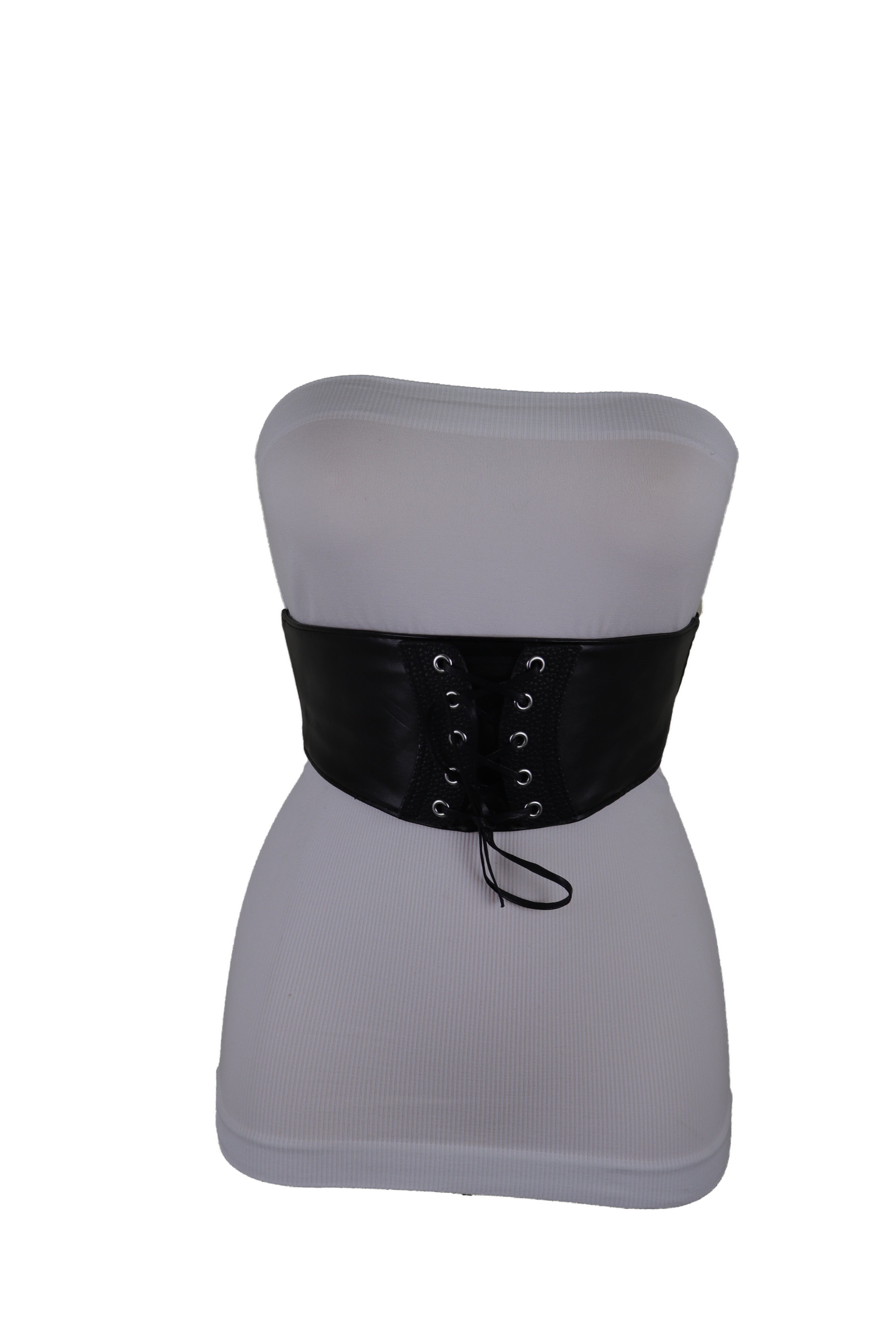 Black Faux Leather Elastic Corset Fashion Tie Belt Hip High Waist Size S M
