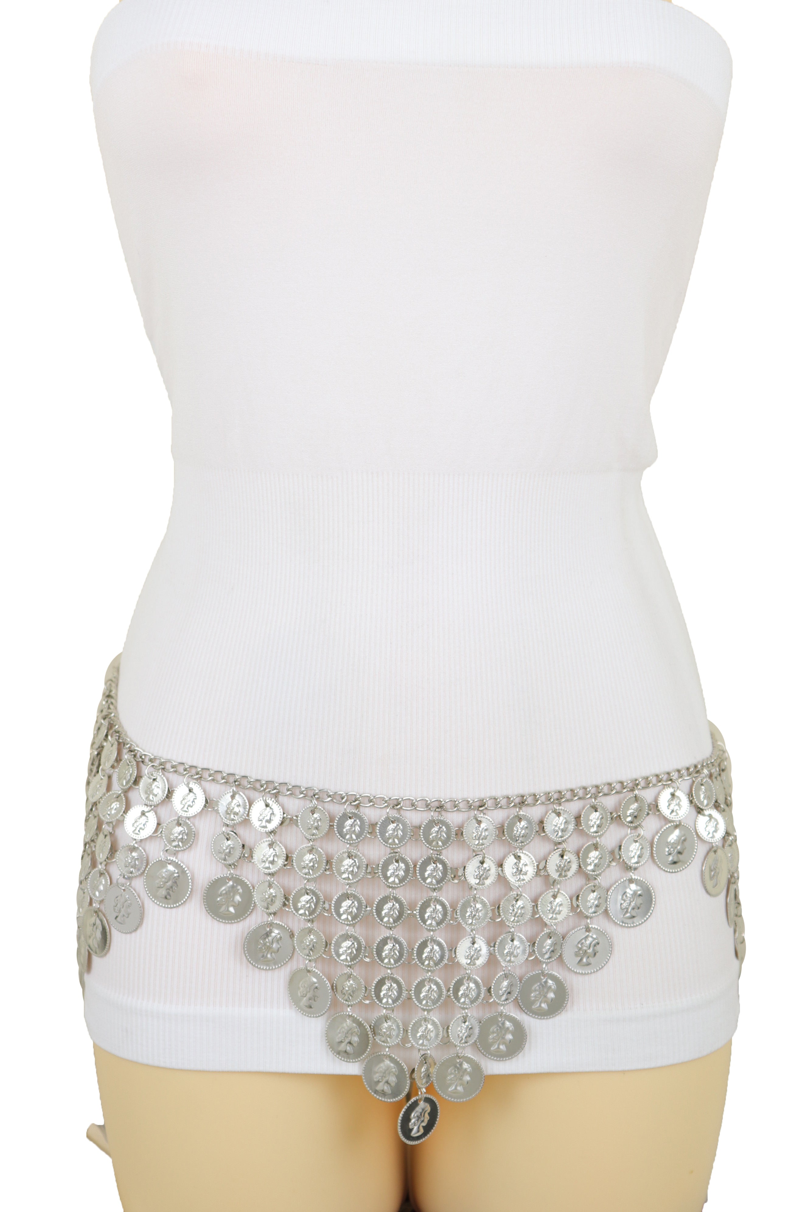 Silver Metal Chain Coin Charms Bling Belt Belly Dance Hip High Waist Fit S M