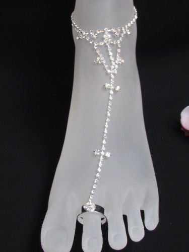 Silver Metal Casual Anklet Foot Chain Body Jewelry Mini Rhinestones