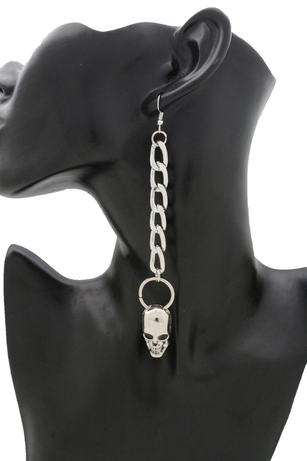 #PunkRockJewelry #SkullCharm #StreetStyleEarrings #FashionJewelry #EdgyAccessories #SilverChains #UniqueStyle