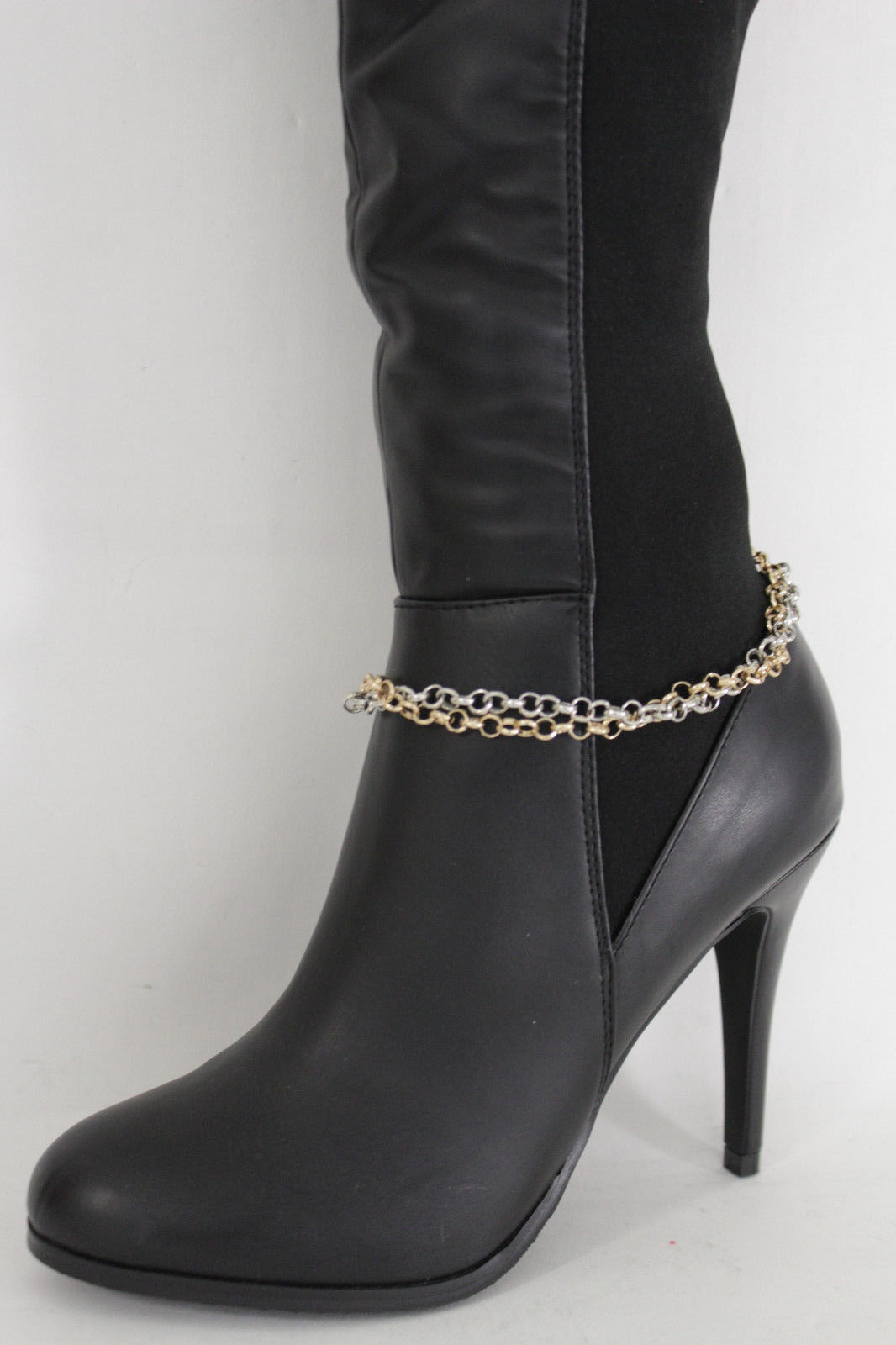 Women Western Hot Fashion Bracelet Gold Silver Metal Chain Anklet Bling Shoe Charms