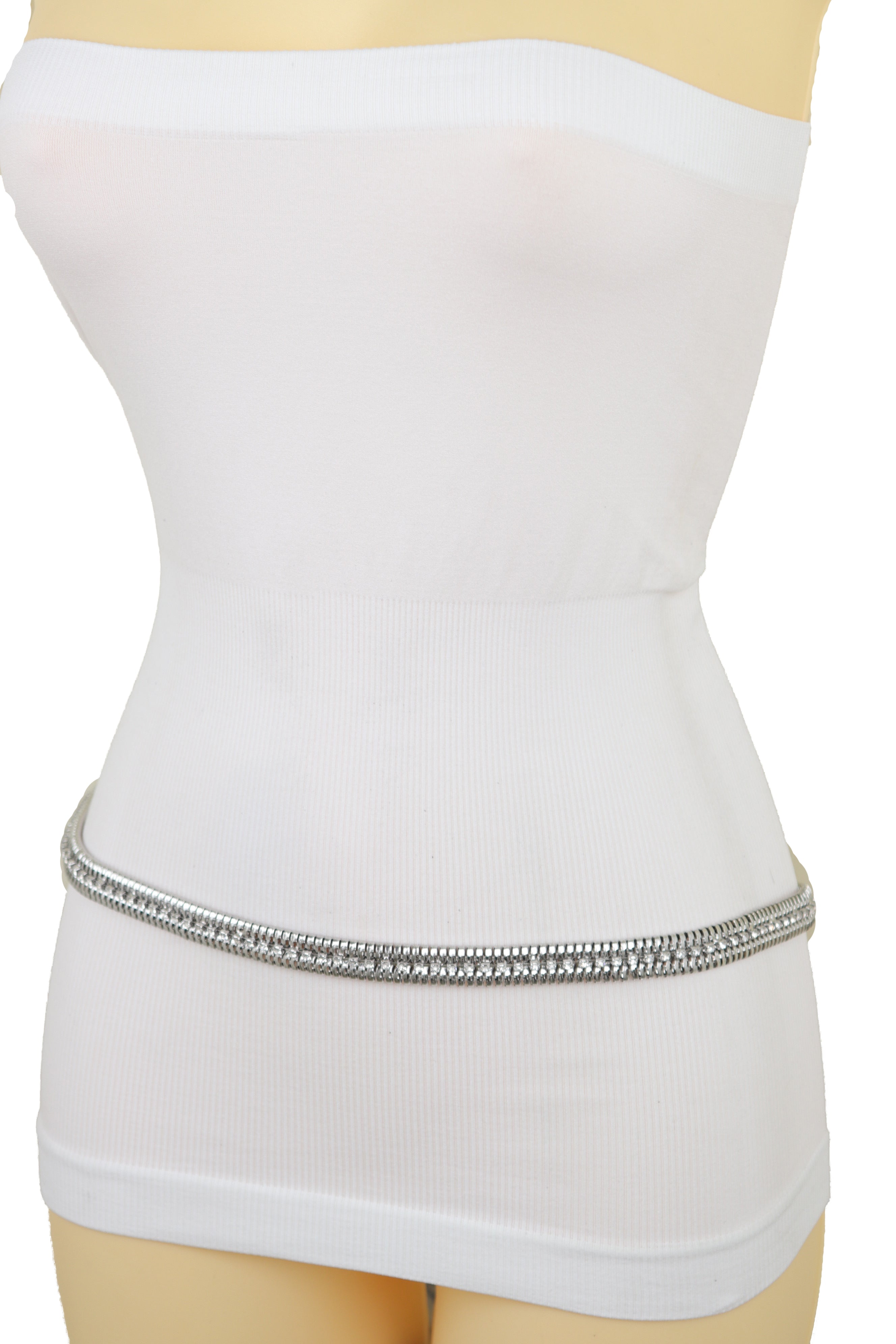 Silver Metal Chain Bling Skinny High Waist Hip Fashion Belt Fit Size S M L