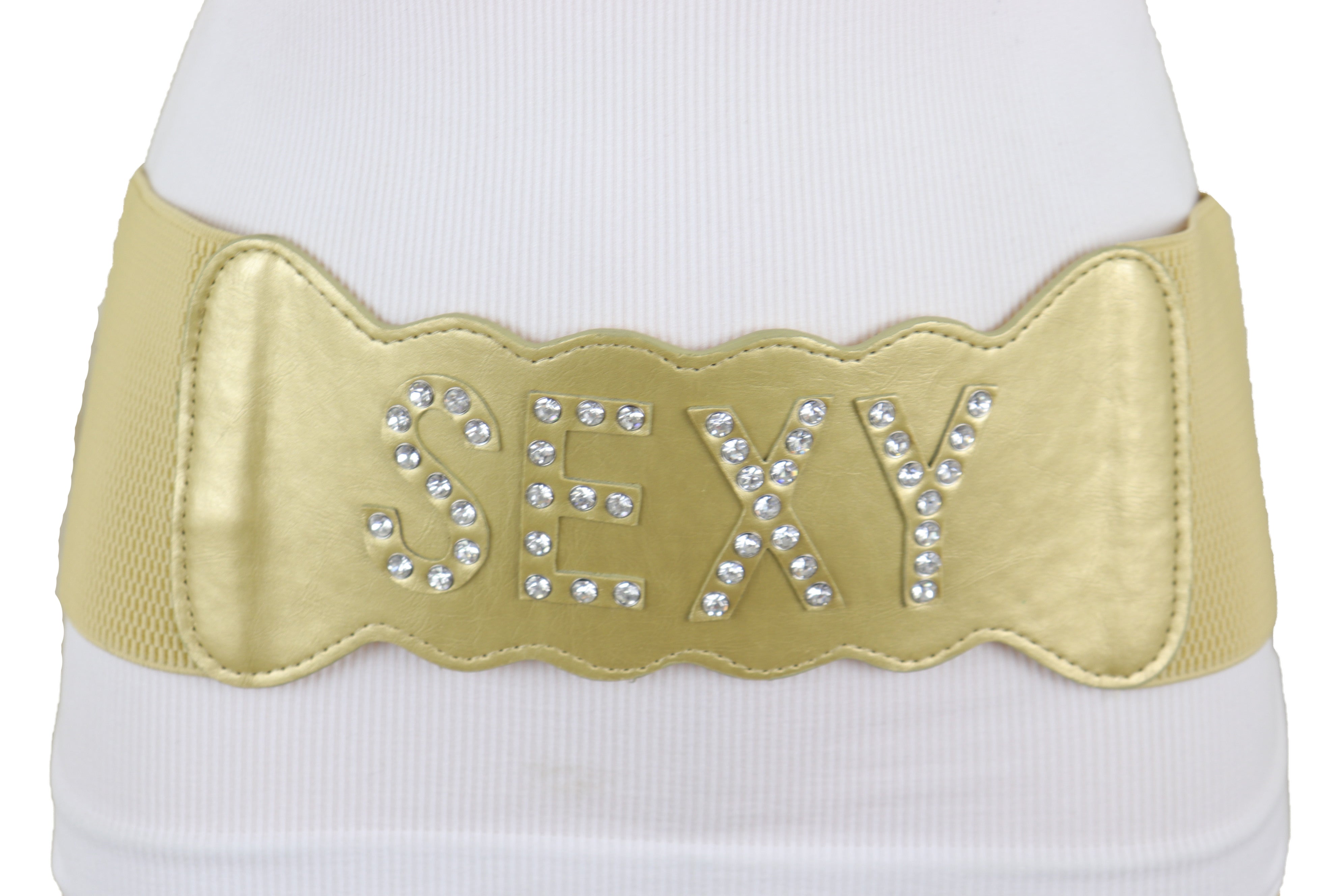 Gold Elastic Band Wide Belt Hip High Waist Silver Bling SEXY Size S M