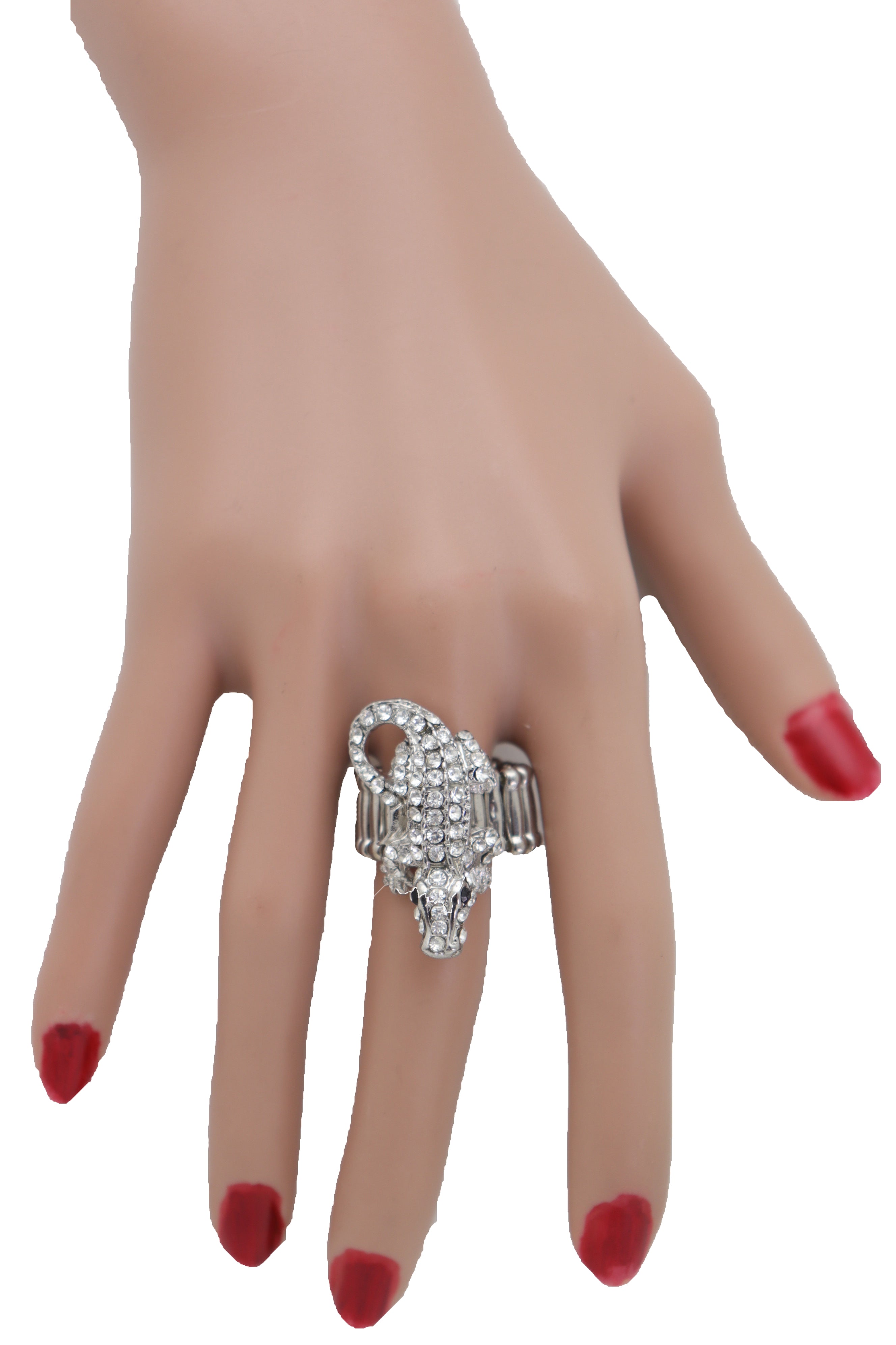 Silver Rhinestone Alligator Crocodile Elastic Band Ring