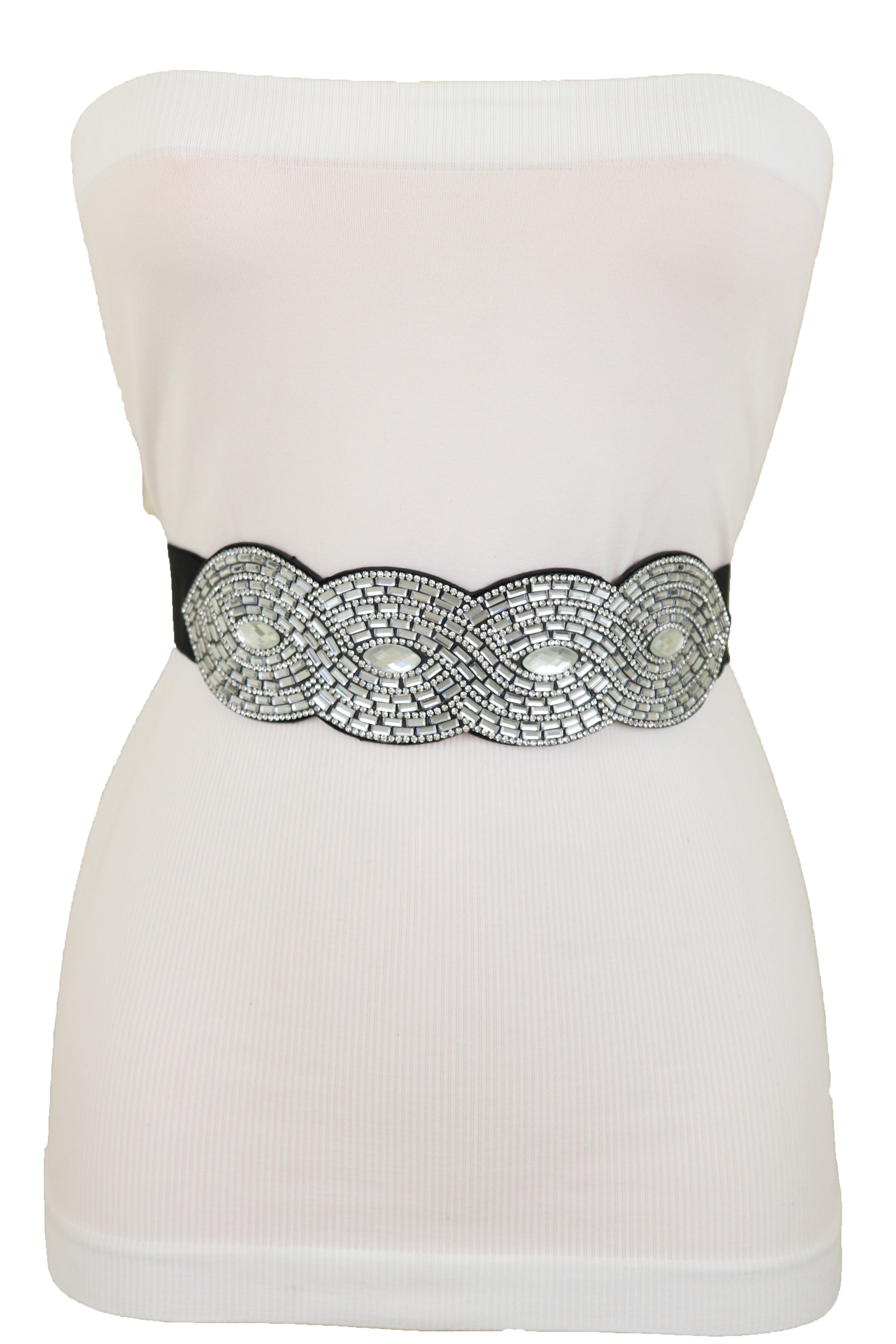 Trendy Black Elastic Belt High Waist Hip Bling Oval Waves Buckle Size S M