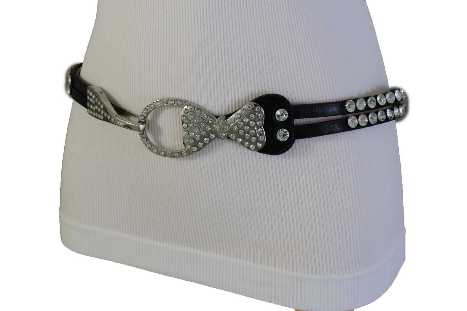 Material: Black Faux Leather + Silver Metal Buckle And Rhinestones